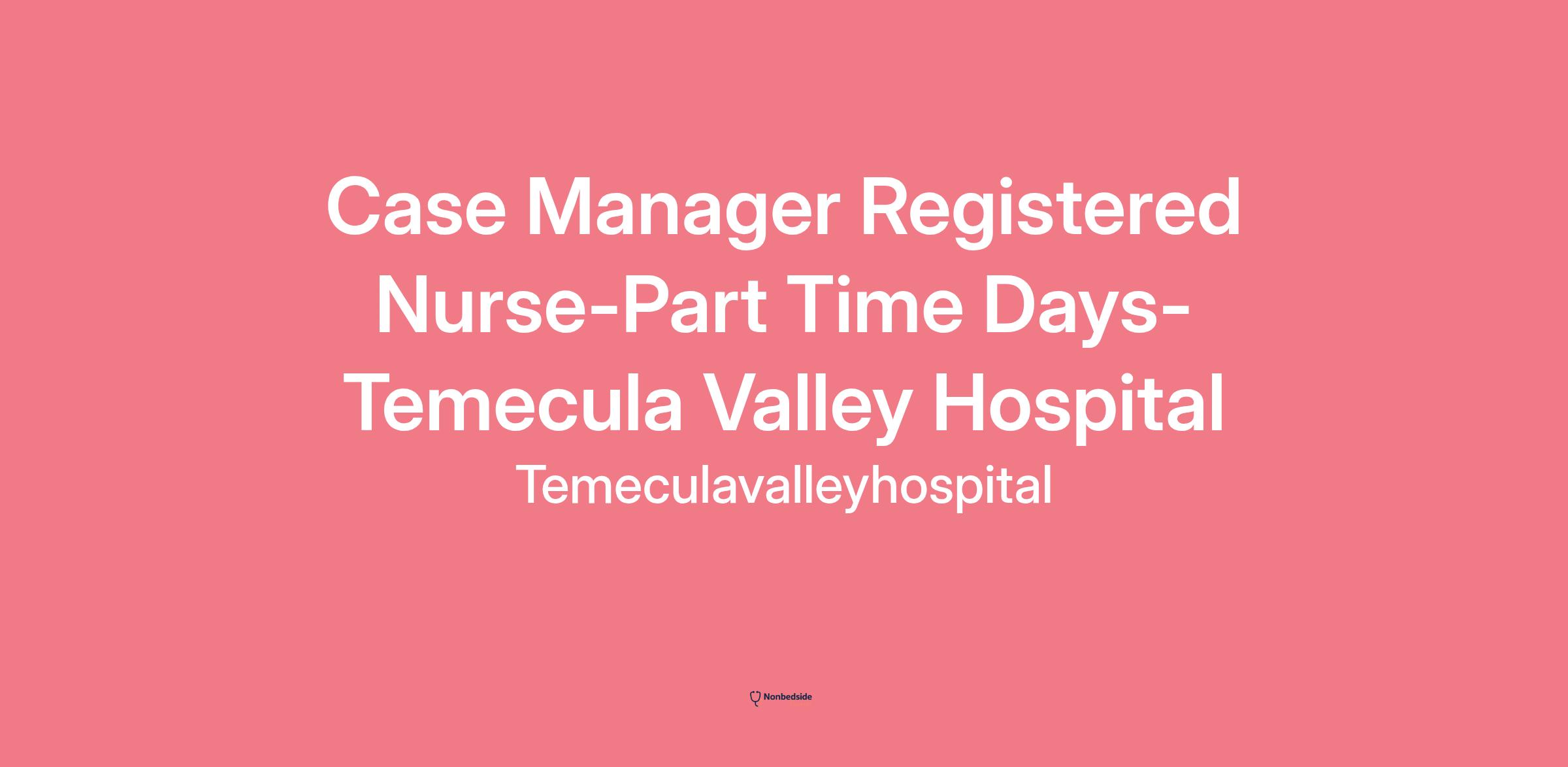 Case Manager Registered Nurse-Part Time Days-Temecula Valley Hospital