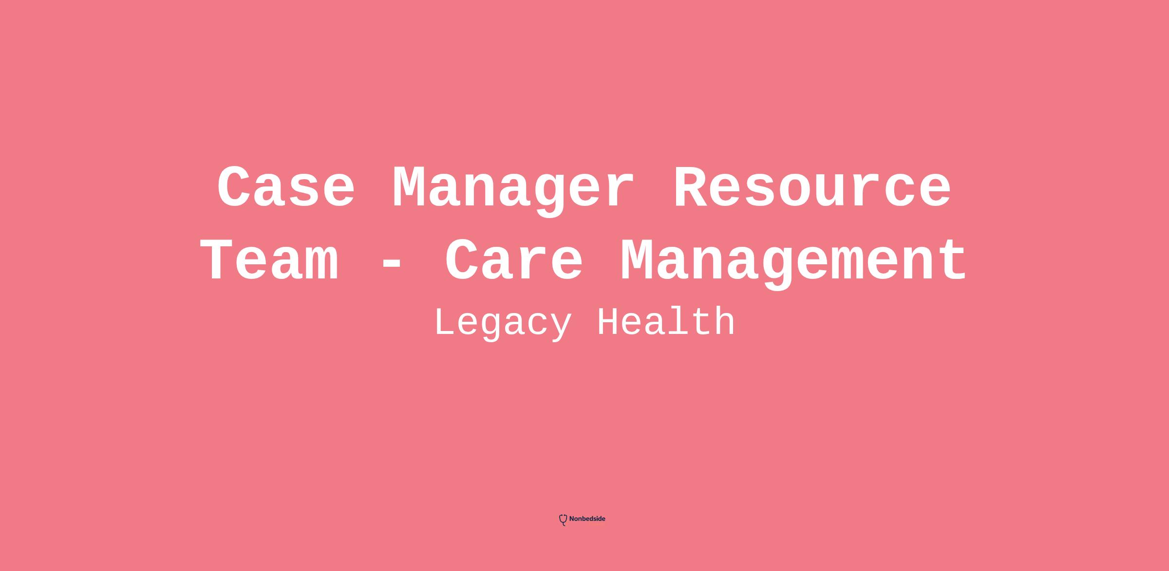 This position will support the Care Management Resource Pool and may be required to support multiple locations system-wide within the Legacy Health hospitals.
