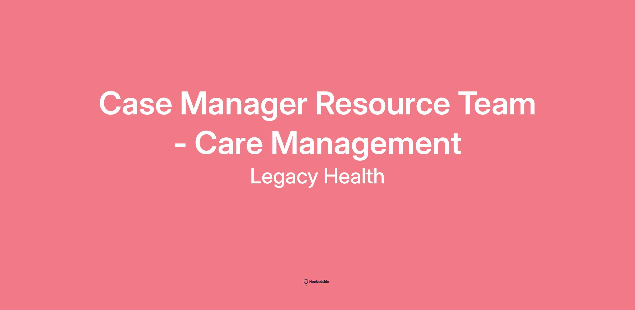 This position will support the Care Management Resource Pool and may be required to support multiple locations system-wide within the Legacy Health hospitals.