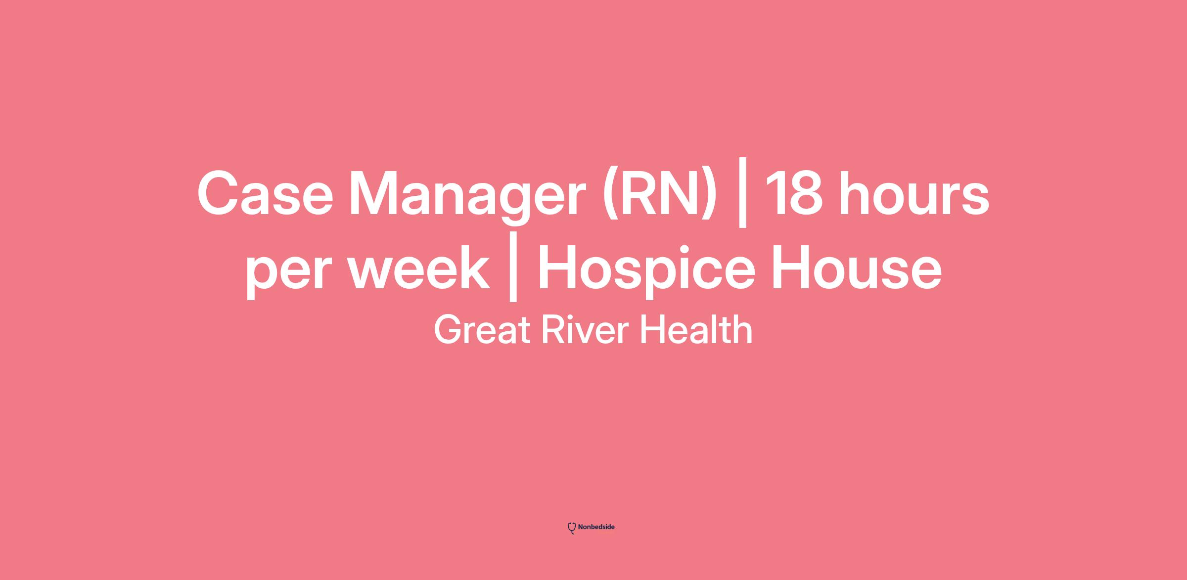 Join to apply for the Case Manager (RN) | 18 hours per week | Hospice House role at Great River Health