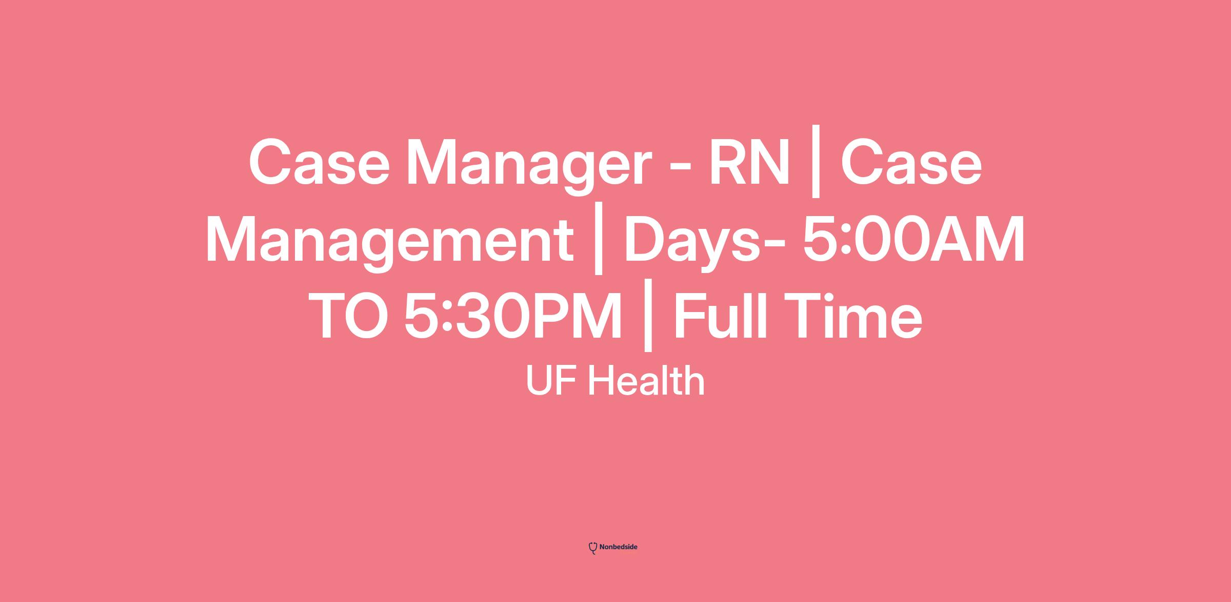 Case Manager - RN | Case Management | Days- 5:00AM TO 5:30PM | Full Time