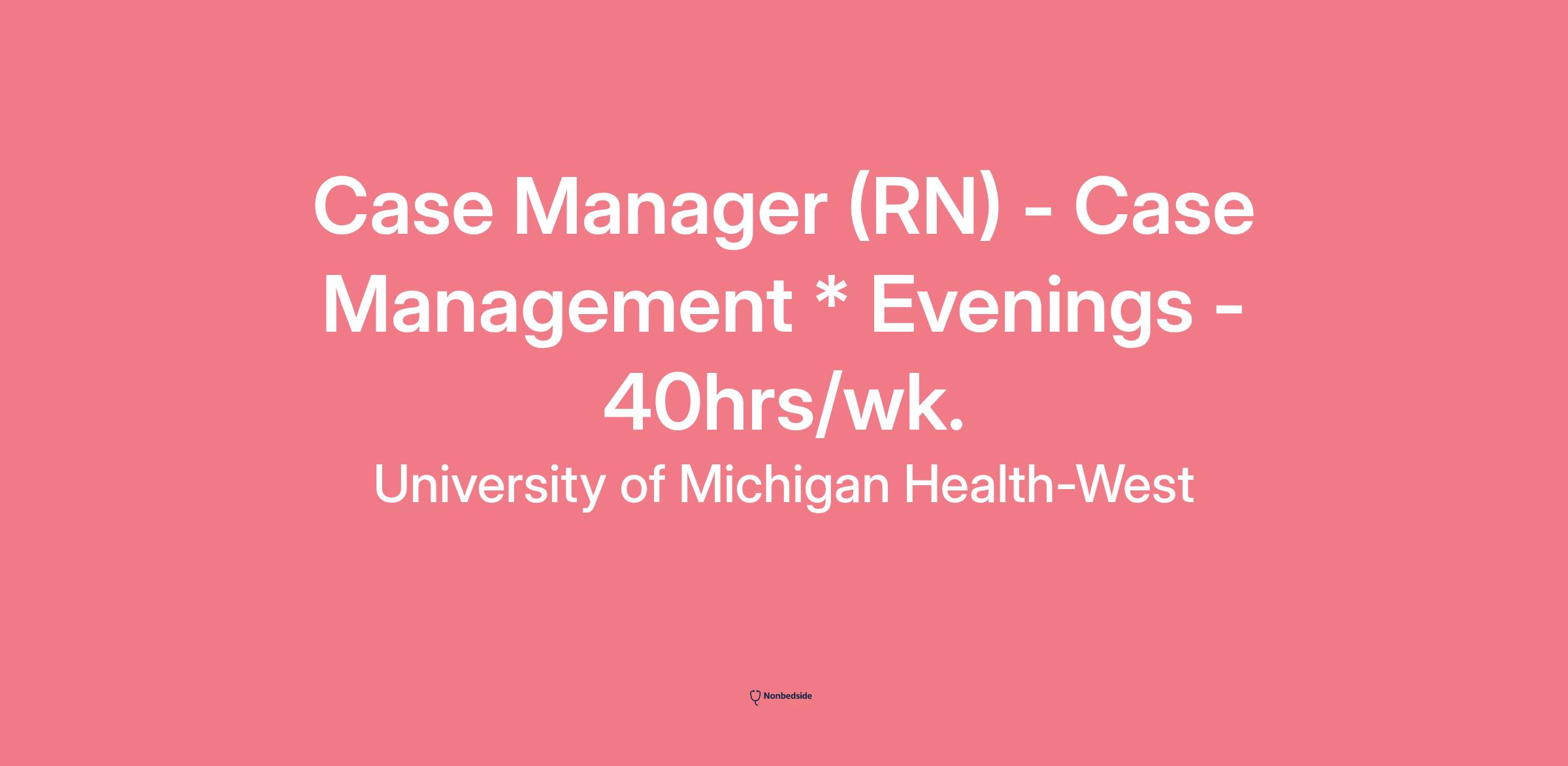 Case Manager (RN) - Case Management * Evenings - 40hrs/wk.