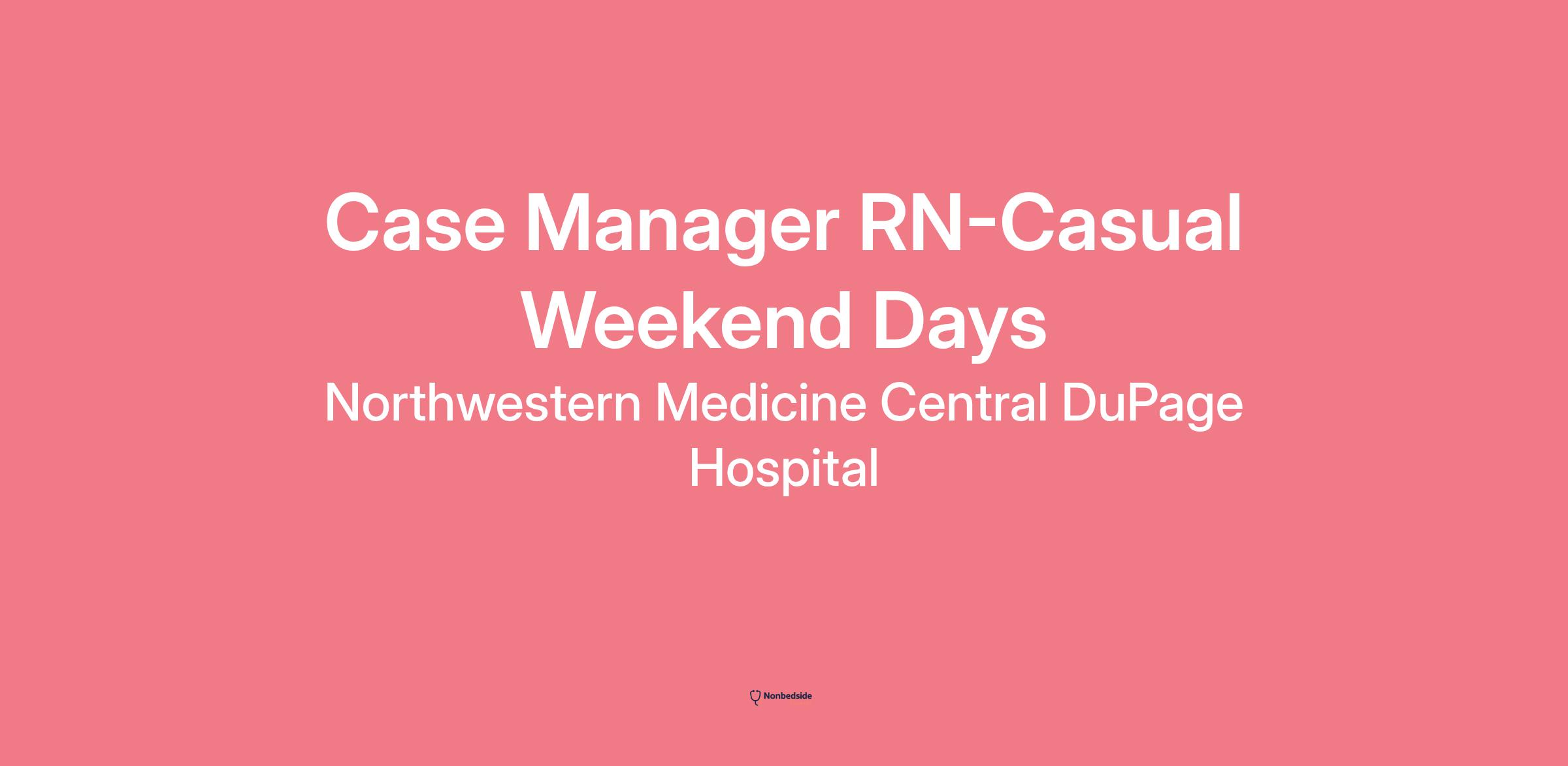 This is a casual/as needed position located at Northwestern Medicine Catherine Gratz Griffin Lake Forest Hospital. This role provides additional staffing support on the weekends. The Case Manager, RN (PT) reflects the mission, vision, and values of NM, adheres to the organization's Code of Ethics and Corporate Compliance Program, and complies with all relevant policies, procedures, guidelines and all other regulatory and accreditation standards.