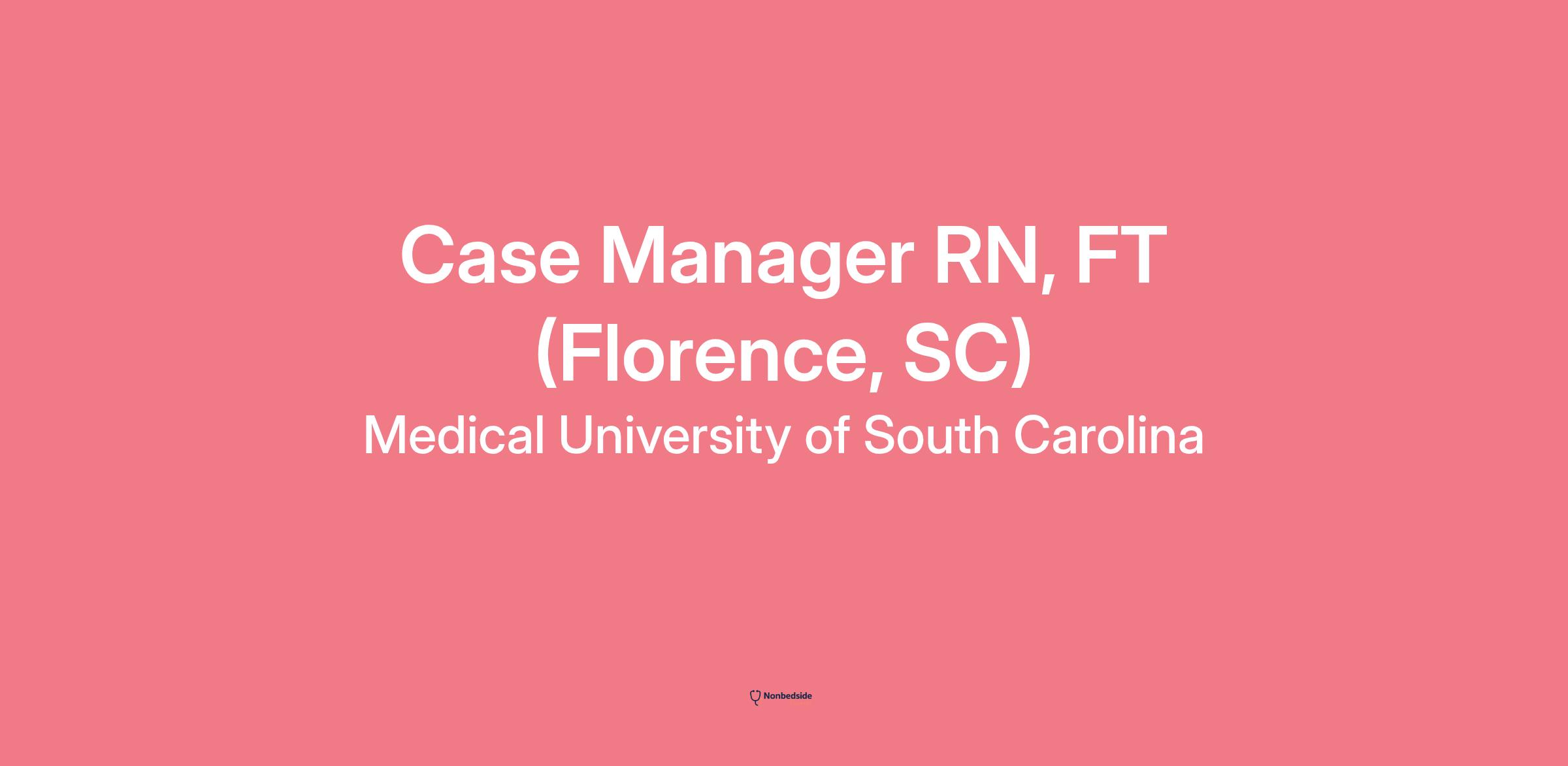 Overview Come join our Florence, SC Case Management team as a full-time Case Manager RN!