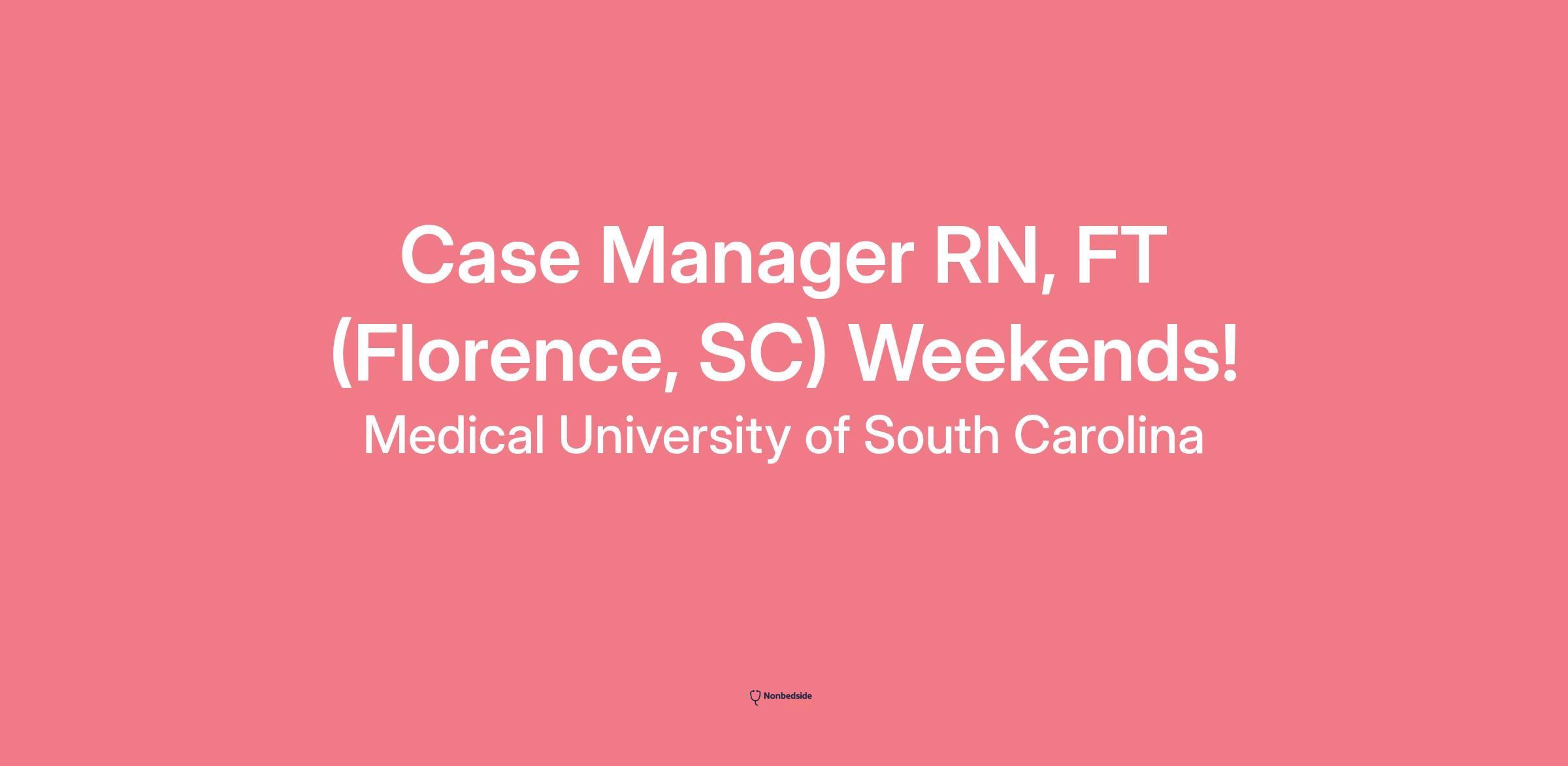 Job Description Summary Come join our Florence, SC Case Management team as a full-time Case Manager RN on Weekends!