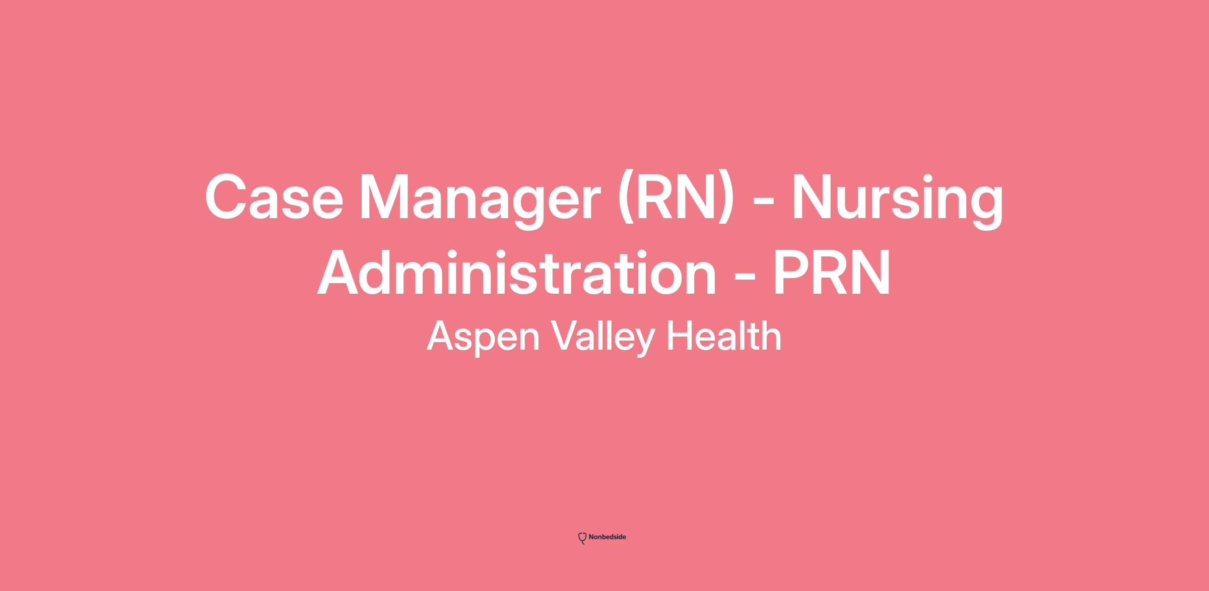 Overview We are currently hiring for a PRN Case Manager (RN) within the Nursing Administration department here at Aspen Valley Health.