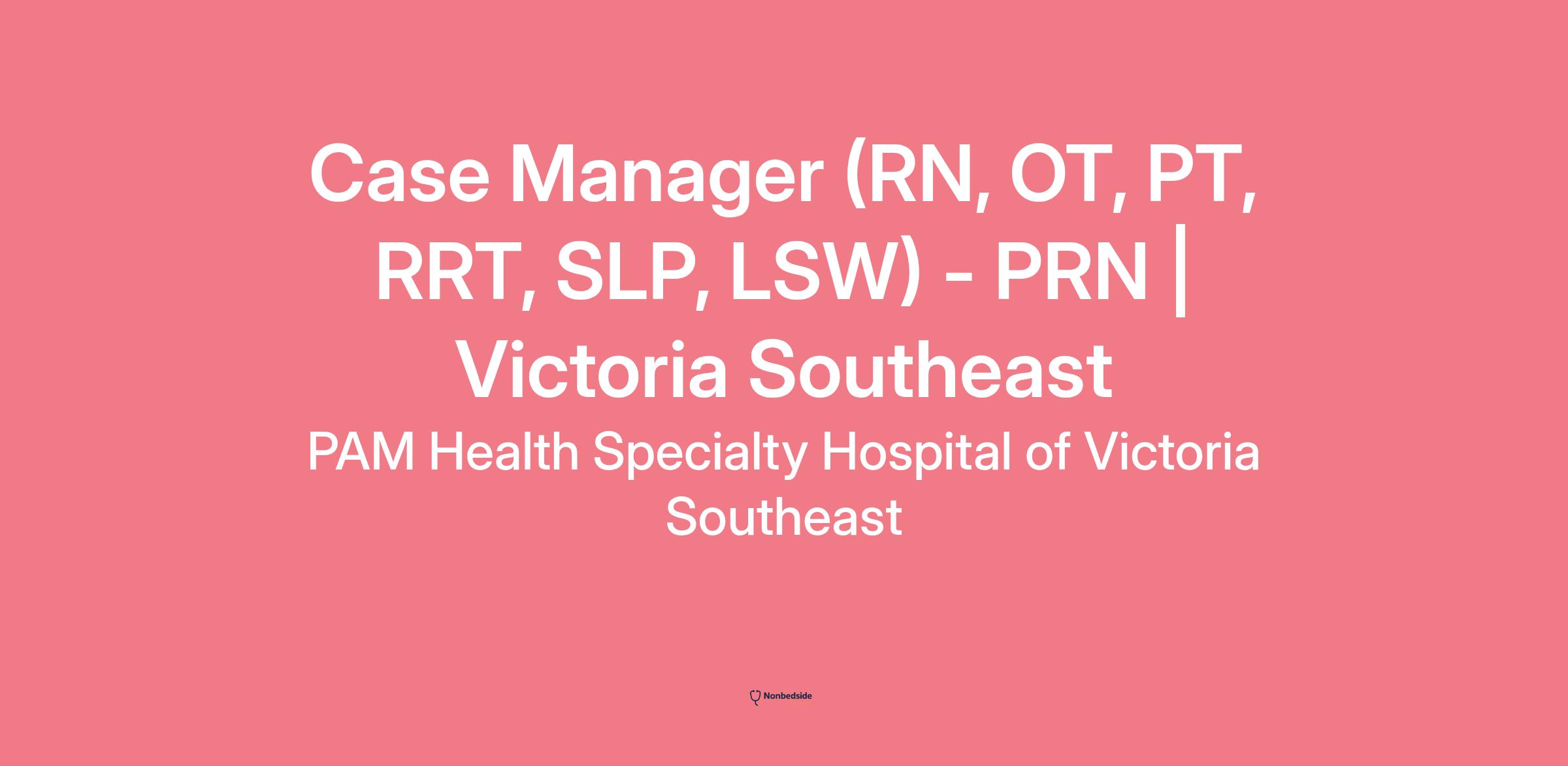 Apply for the Case Manager (RN, OT, PT, RRT, SLP, LSW) - PRN at PAM Health Specialty Hospital of Victoria Southeast .