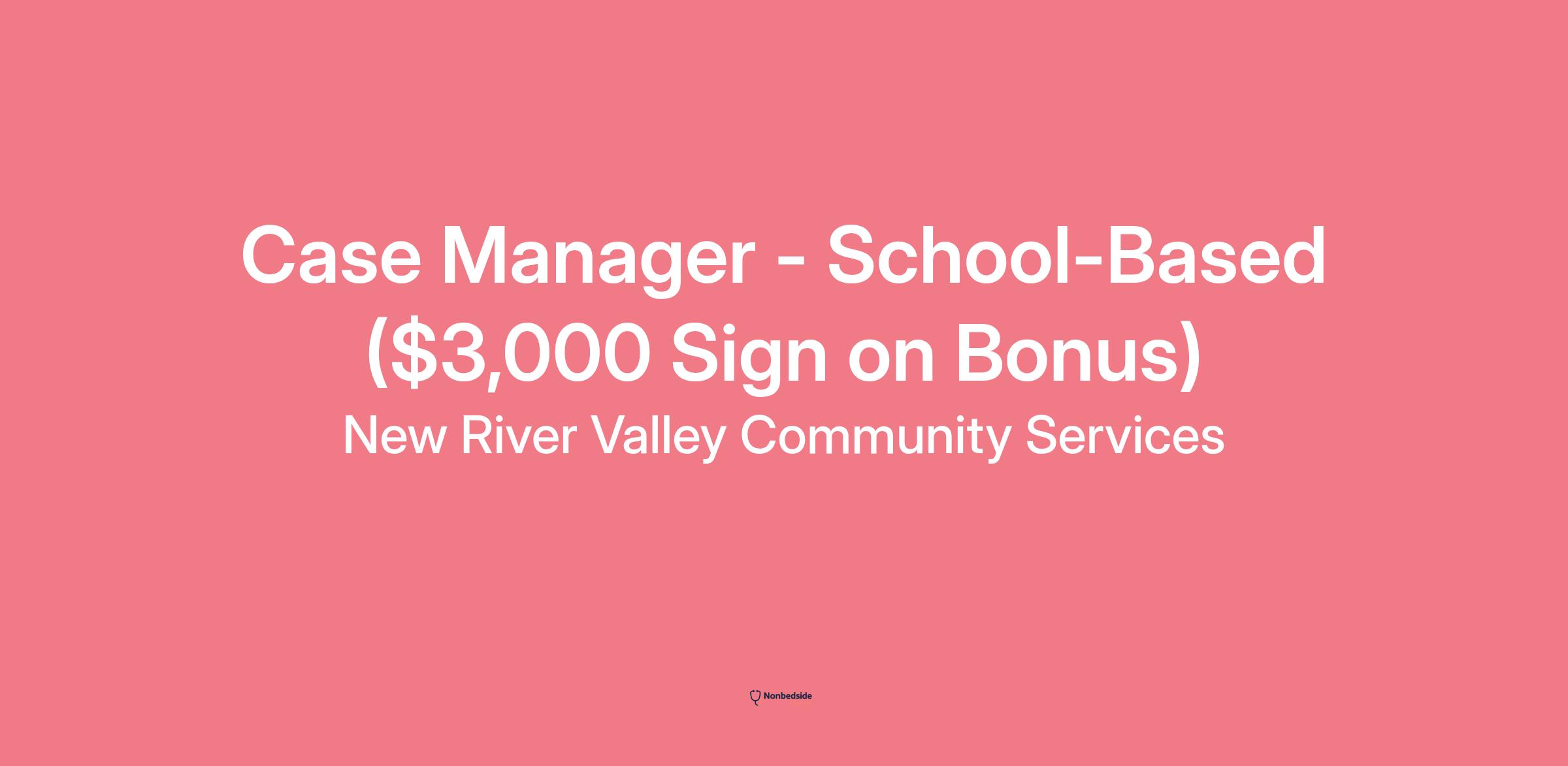Case Manager - School-Based ($3,000 Sign on Bonus) Join to apply for the Case Manager - School-Based ($3,000 Sign on Bonus) role at New River Valley Community Services . NRVCS was recently named the number one counseling or therapy practice in the Southwest Virginia Region. What better way to help out the future of the NRV than to work in the school system! We have School-Based Case Manager positions available, working with a great team in school systems all across the NRV. As an employee of NRVCS, you will also be subject to our competitive benefits package, a VRS fund, and a generous PTO plan. This is a year‑round position. If you are interested in working with youth in our local school systems to make a difference in our community, come join NRVCS.