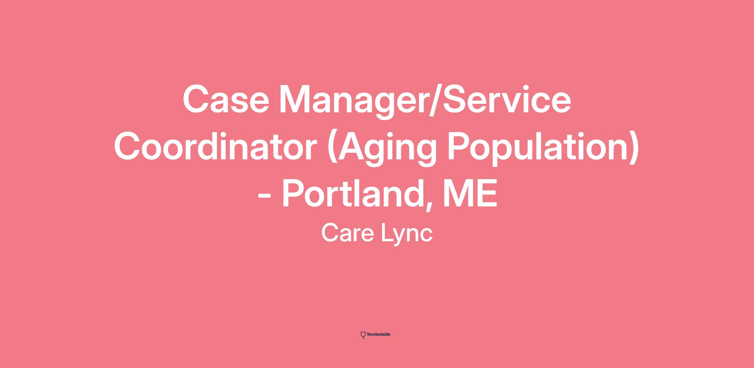 Case Manager/Service Coordinator (Aging Population) - Portland, ME