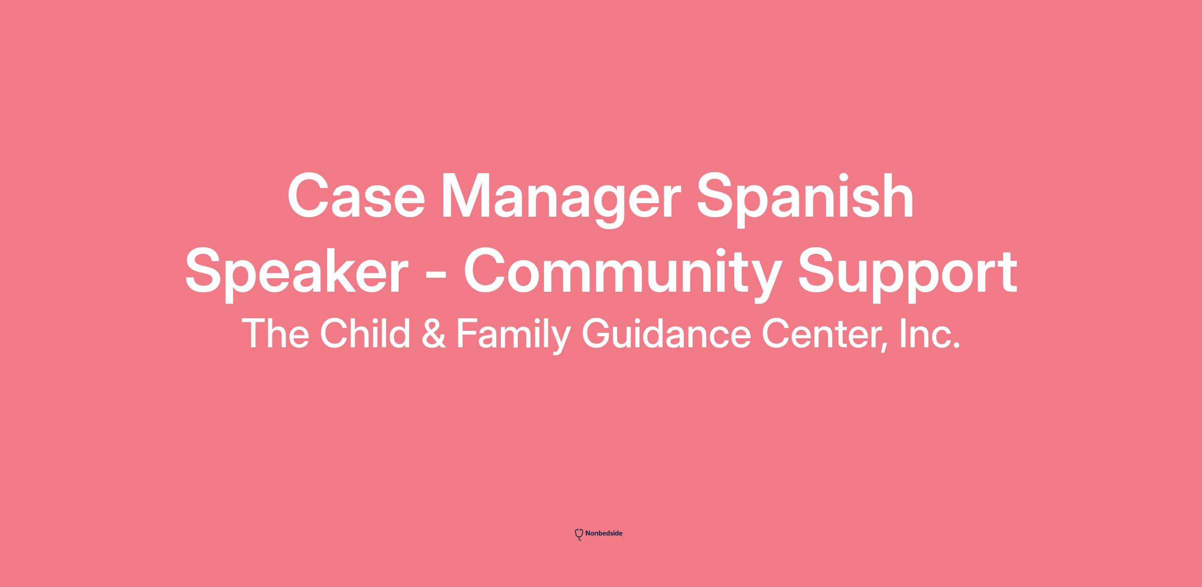 Case Manager Spanish Speaker - Community Support Join to apply for the Case Manager Spanish Speaker - Community Support role at The Child & Family Guidance Center, Inc.