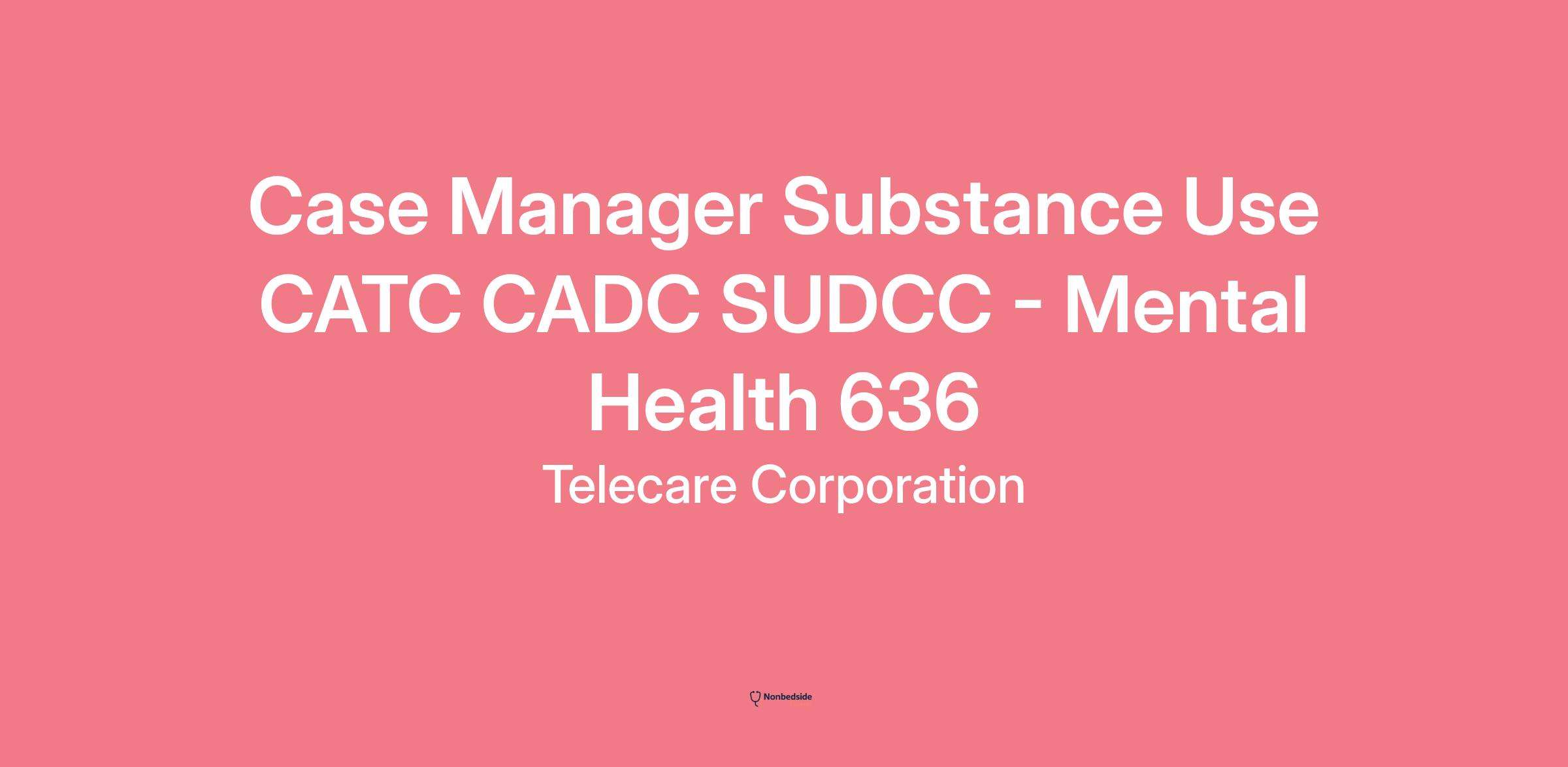 Job Overview Telecare Corporation is seeking a Case Manager Substance Use CATC CADC SUDCC - Mental Health 636 to join their team.