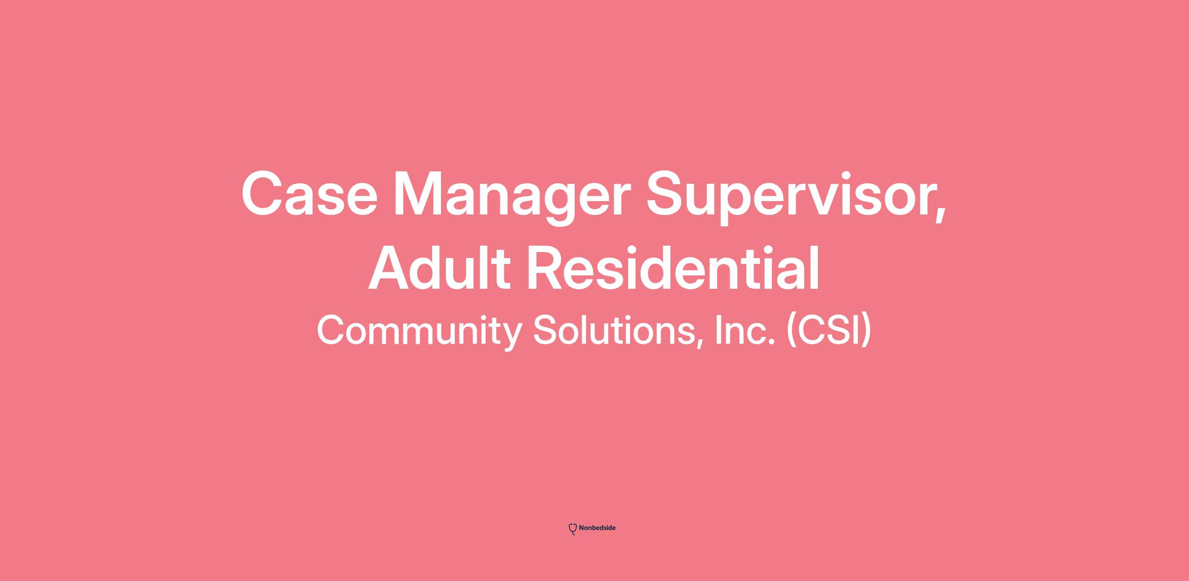 Join to apply for the Case Manager Supervisor, Adult Residential role at Community Solutions, Inc. (CSI) .