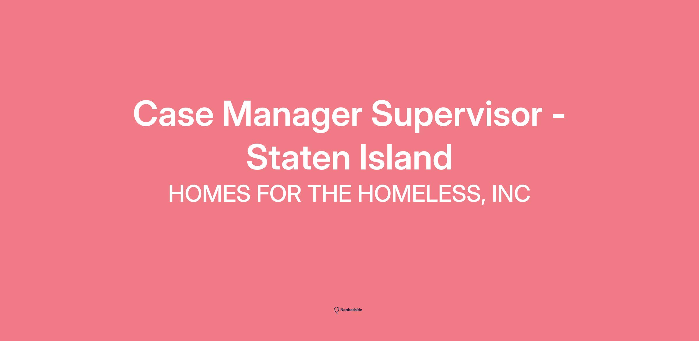We are excited to invite a passionate and experienced Case Manager Supervisor to join our team! Homes for the Homeless (HFH) is searching for an experienced Case Manager Supervisor for our Families w/ Children facility located in Staten Island, NY. As the Case Manager Supervisor, you will play a pivotal role in our organization, overseeing the performance of our dedicated Case Managers, including periodic case file audits and weekly meetings. The Case Manager Supervisor will work closely with our community partners to connect families to much needed resources and take on a caseload as needed. Join us and be a part of an organization that values your contribution and cares deeply for the community we serve.