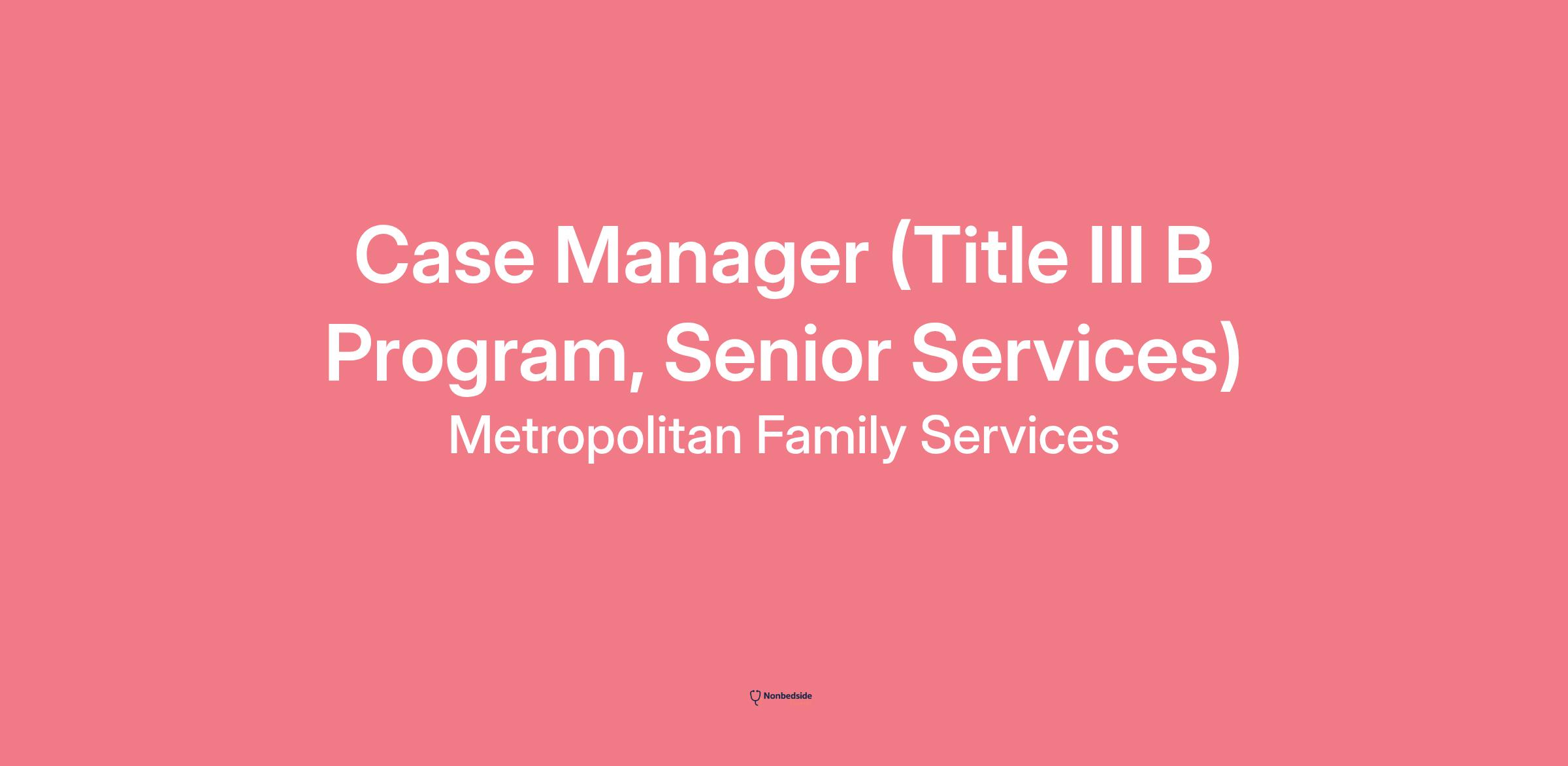 Overview Join to apply for the Case Manager (Title III B Program, Senior Services) role at Metropolitan Family Services .