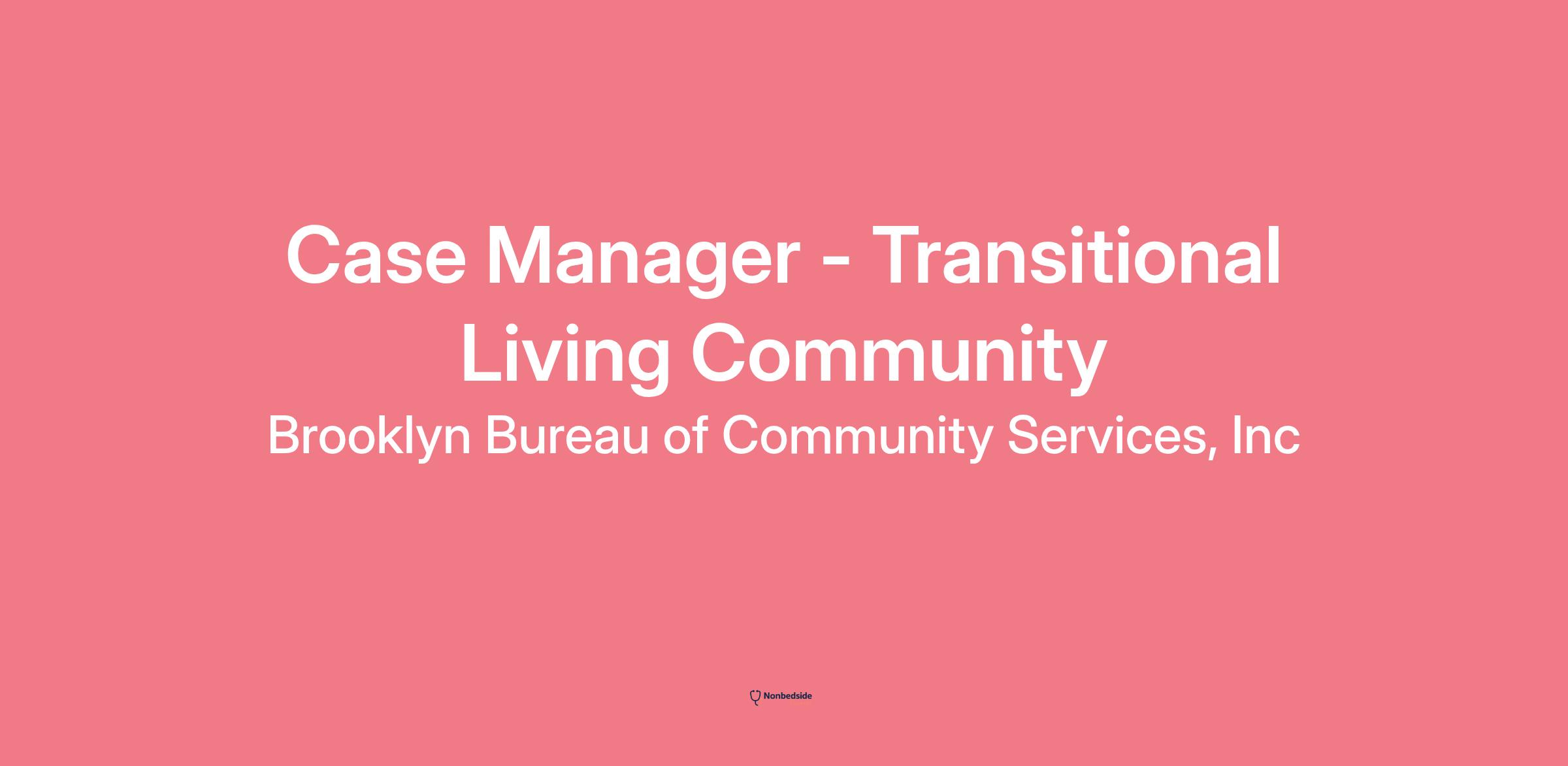 Case Manager - Transitional Living Community Program/Department: Transitional Living Community (TLC)