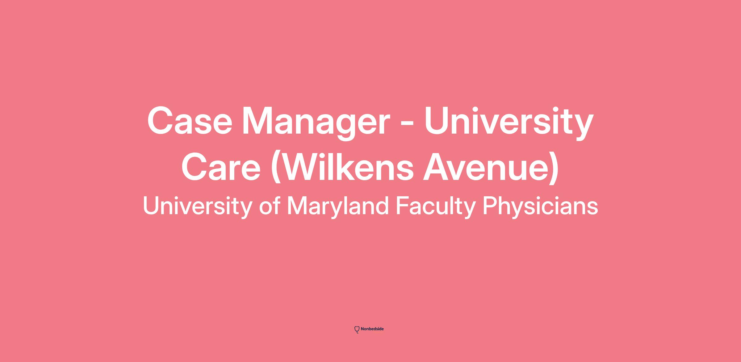 Case Manager - University Care (Wilkens Avenue) Join to apply for the Case Manager - University Care (Wilkens Avenue) role at University of Maryland Faculty Physicians