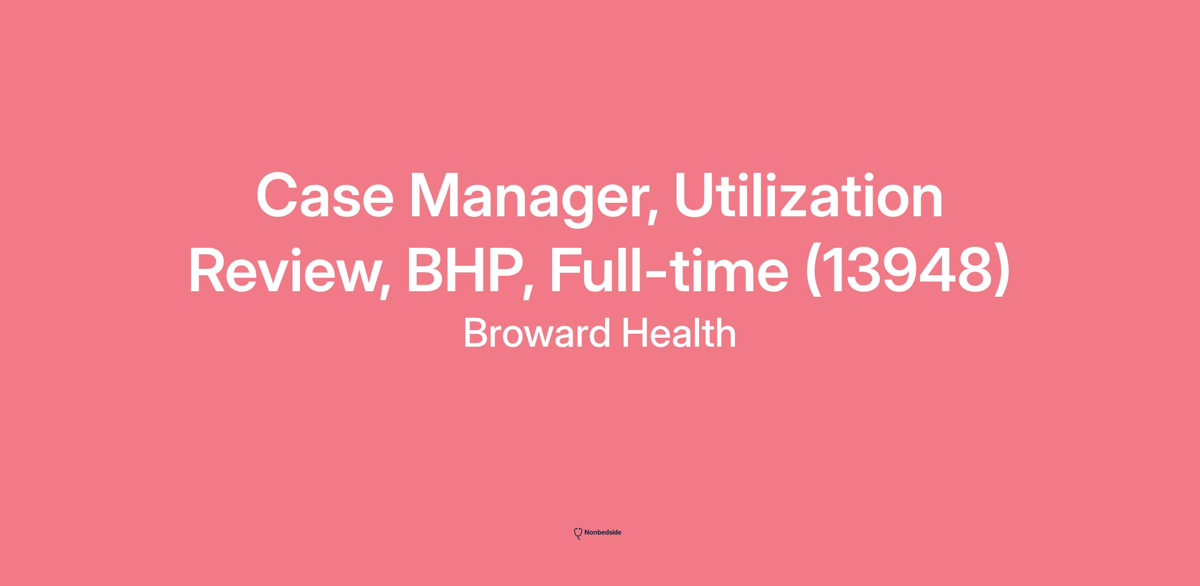 Case Manager, Utilization Review, BHP, Full-time (13948) Broward Health