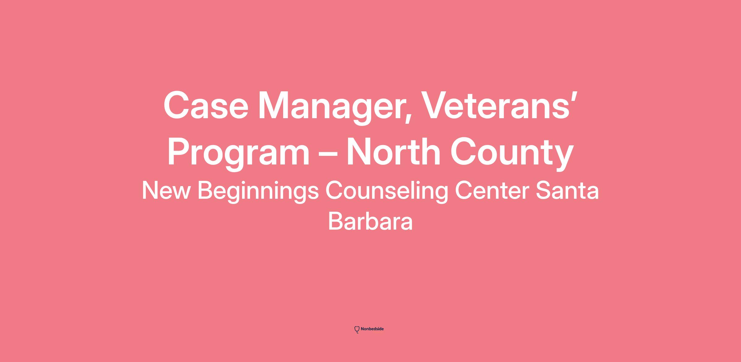 Join to apply for the Case Manager, Veterans’ Program – North County role at New Beginnings Counseling Center Santa Barbara