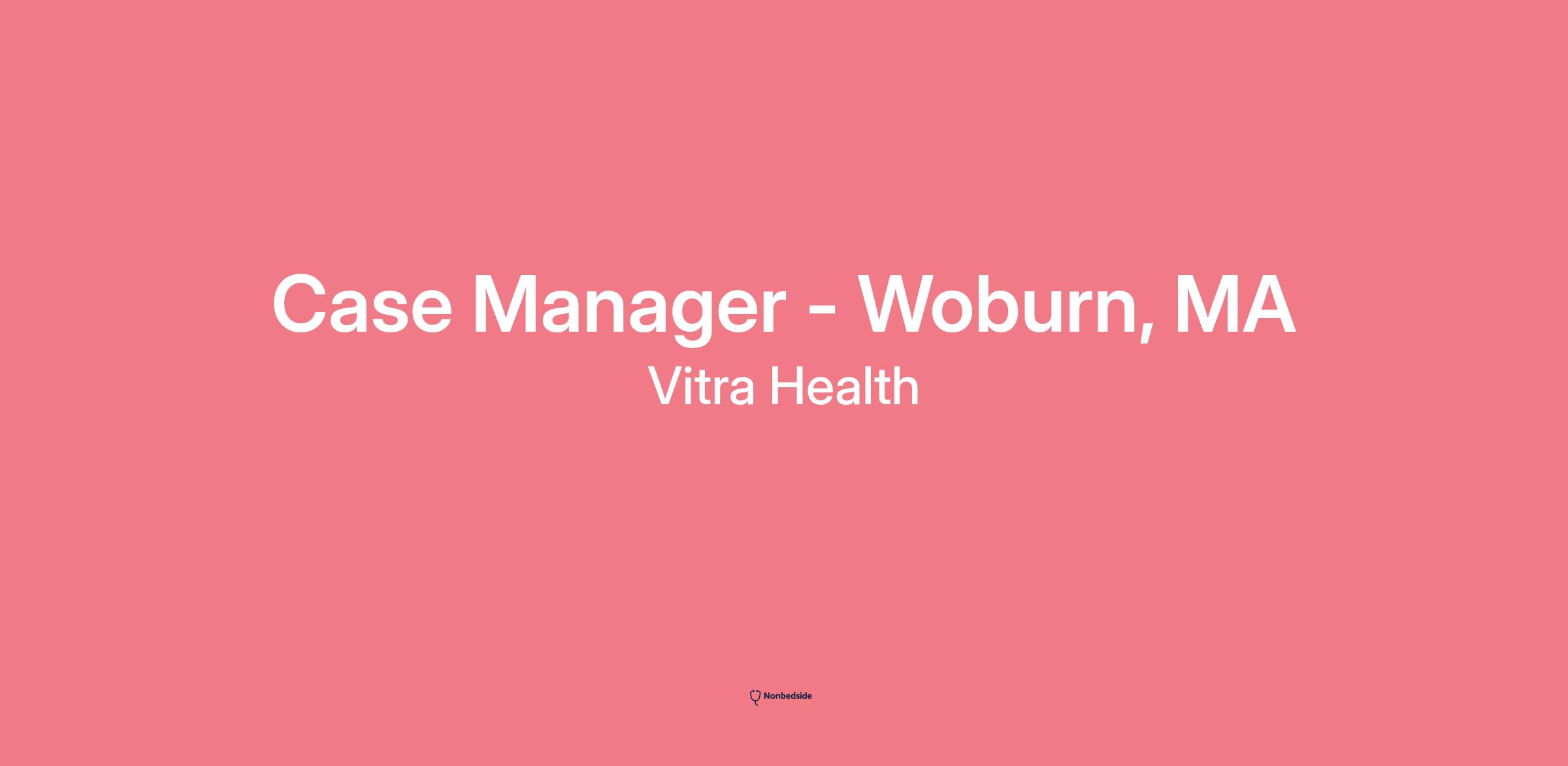 Overview Vitra Health is hiring, and we believe that our team is the key to our success. We are looking for a Non-Clinical Case Manager to support our clients in Woburn, MA .