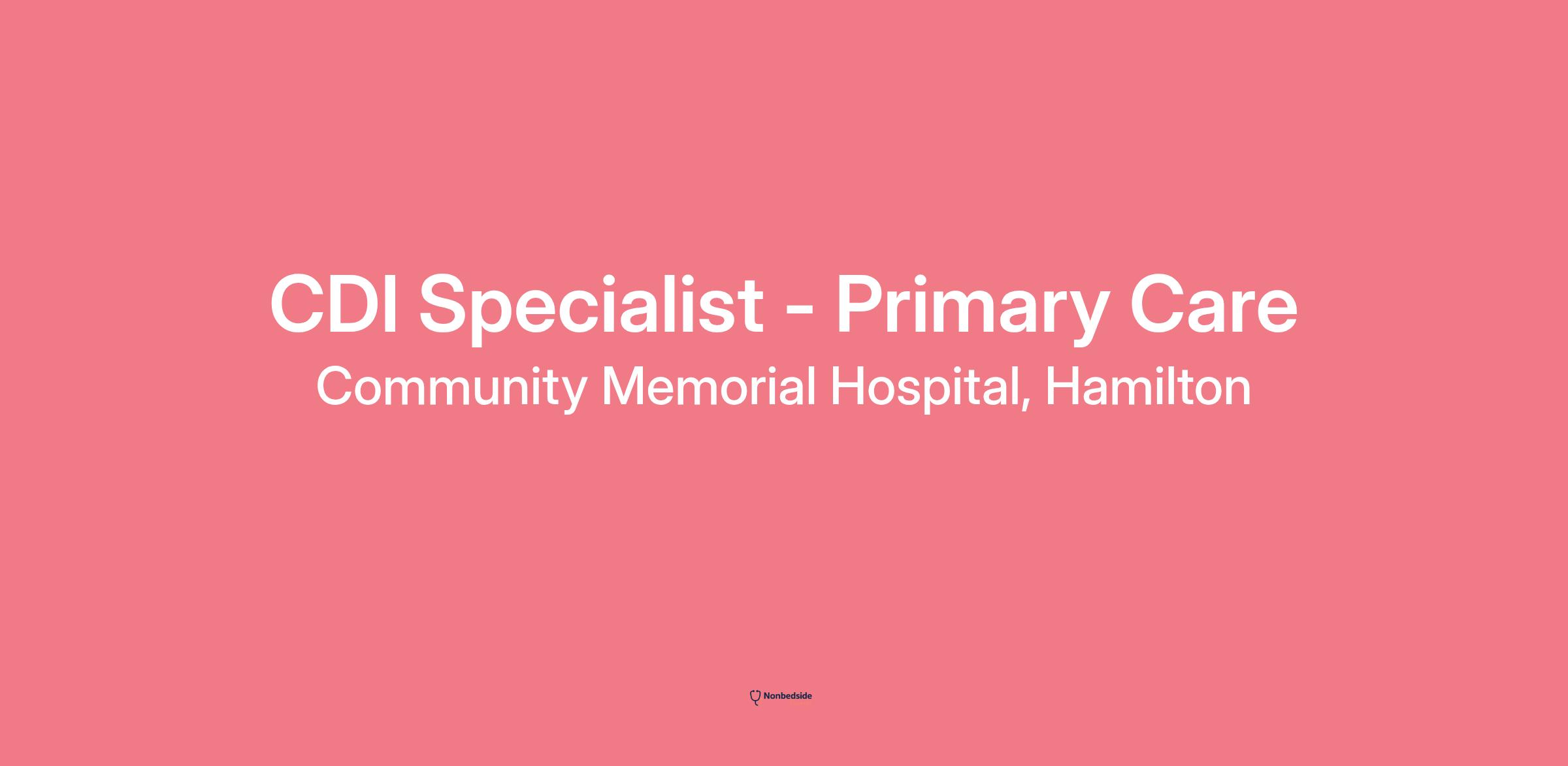 Join to apply for the CDI Specialist - Primary Care role at Community Memorial Hospital, Hamilton .