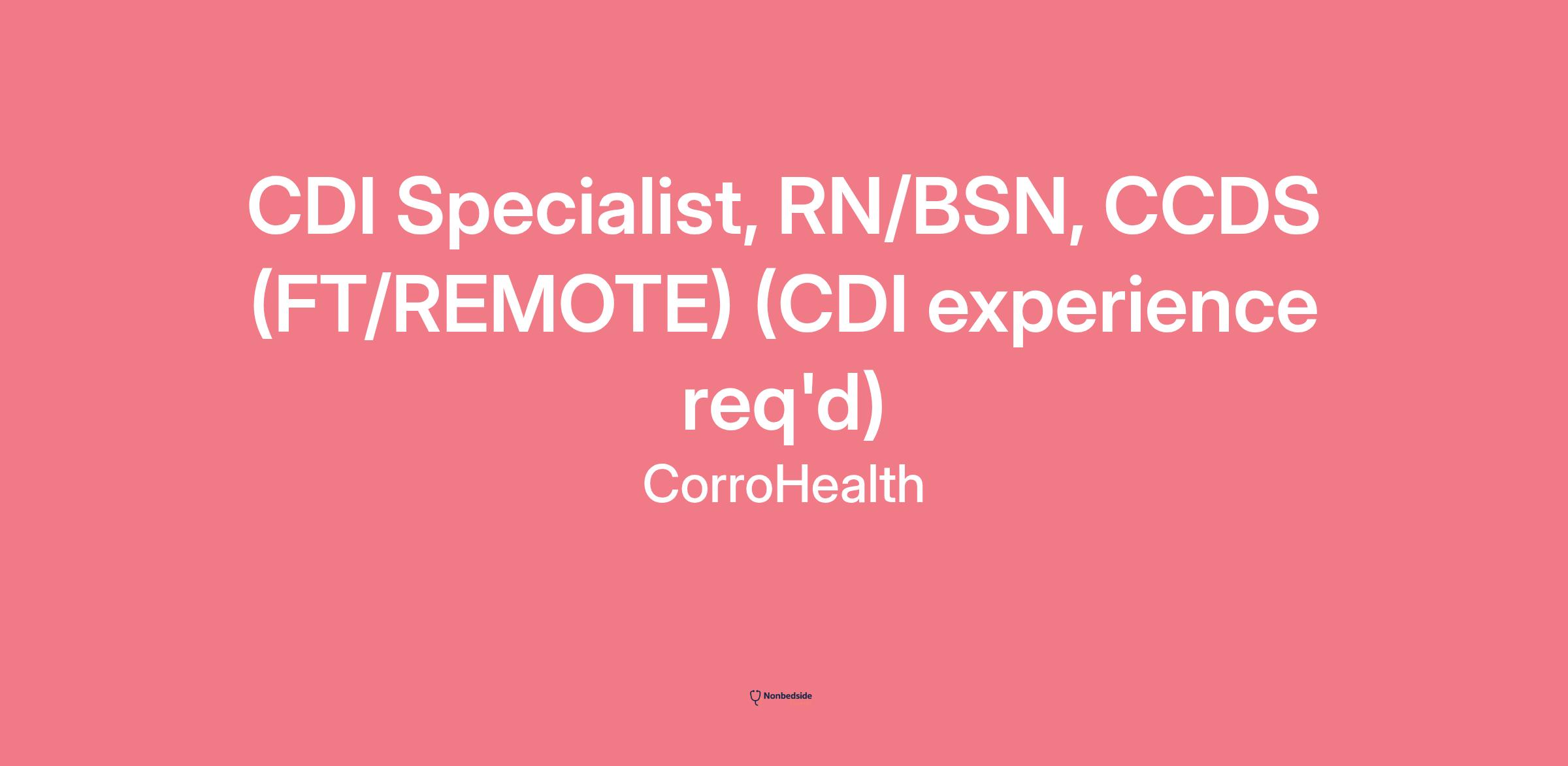 CDI Specialists will collaborate extensively with physicians, nursing staff, other patient caregivers, and medical records coding staff to improve the quality, specificity, accuracy and completeness of the documentation of care provided and coded. CDI Specialist will review medical records for opportunities for diagnosis clarification and validity as it pertains to DRG assignment, severity of illness, risk of mortality, and case mix data as well as timely, accurate and complete documentation of clinical information used for measuring and reporting physician and facility outcomes. These goals will be accomplished by chart review and query placement when appropriate following AHIMA guidelines and CorroHealth policies and procedures.