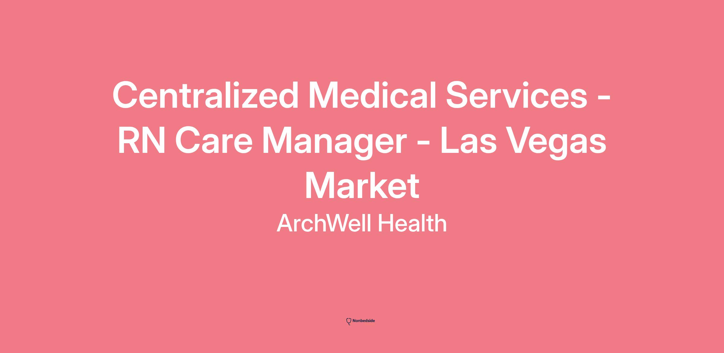 Centralized Medical Services - RN Care Manager - Las Vegas Market Las Vegas, NV, USA Req #12289