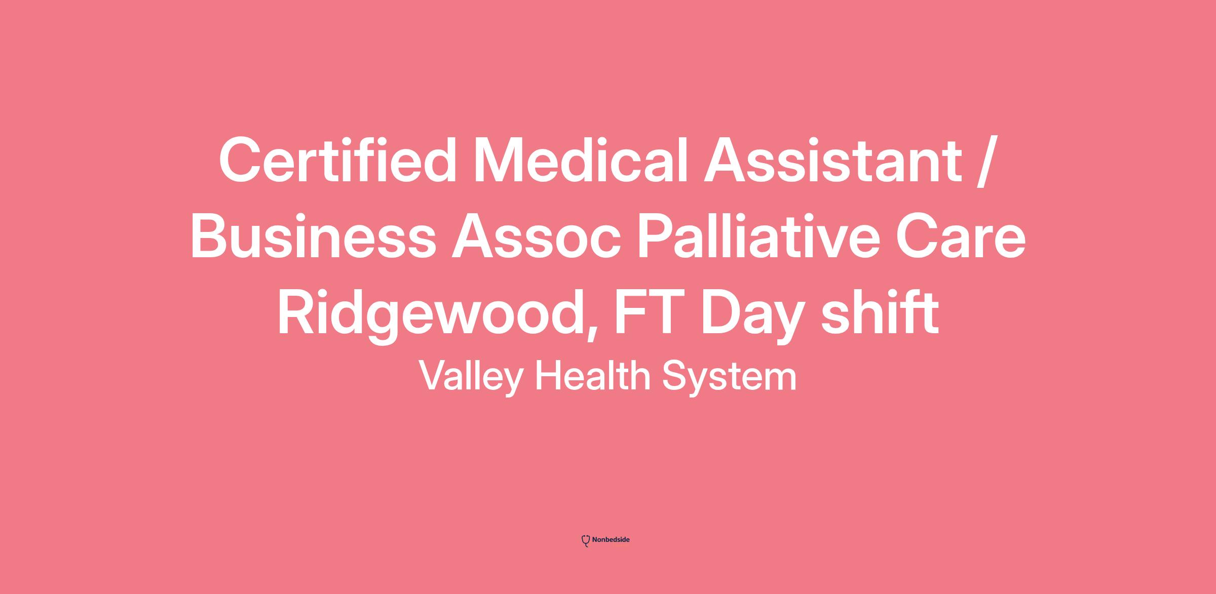 High school diploma or equivalent and completion of a formal Medical Assistant program that is recognized by the State of New Jersey - Certification required.