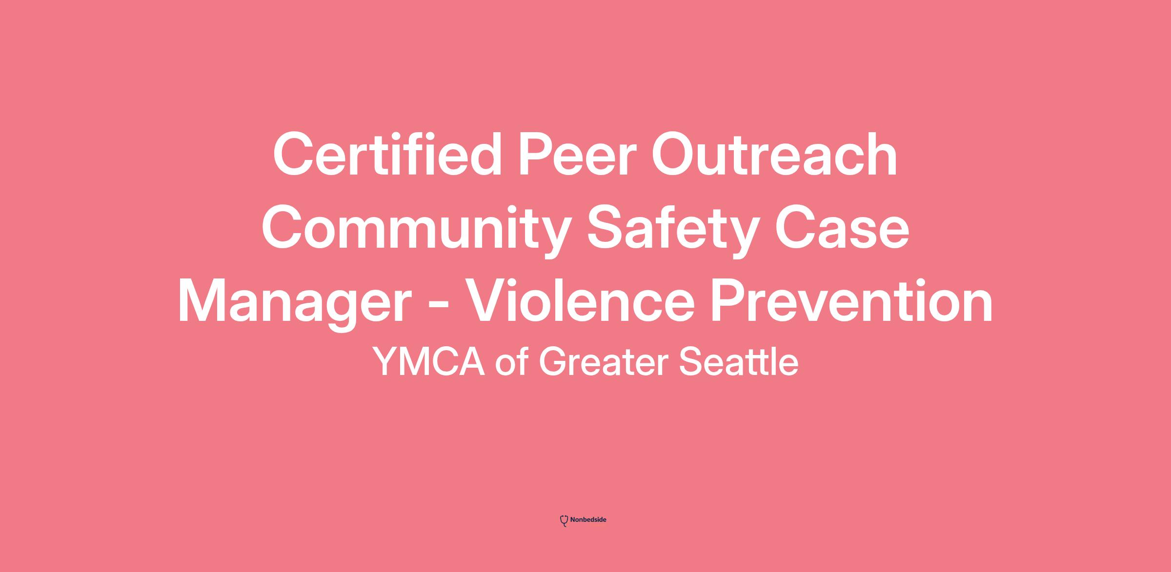 Overview Certified Peer Outreach Community Safety Case Manager - Violence Prevention role at YMCA of Greater Seattle. The CPC/CM will serve youth and families affected by gun violence and/or group/gang involvement, and involvement with the juvenile justice system, within King County and unincorporated areas. The position requires intensive and coordinated responses to youth participants and community members experiencing trauma from acts of violence at various sites including but not limited to detention facilities, hospitals, and vigils during evenings and weekends as required.
