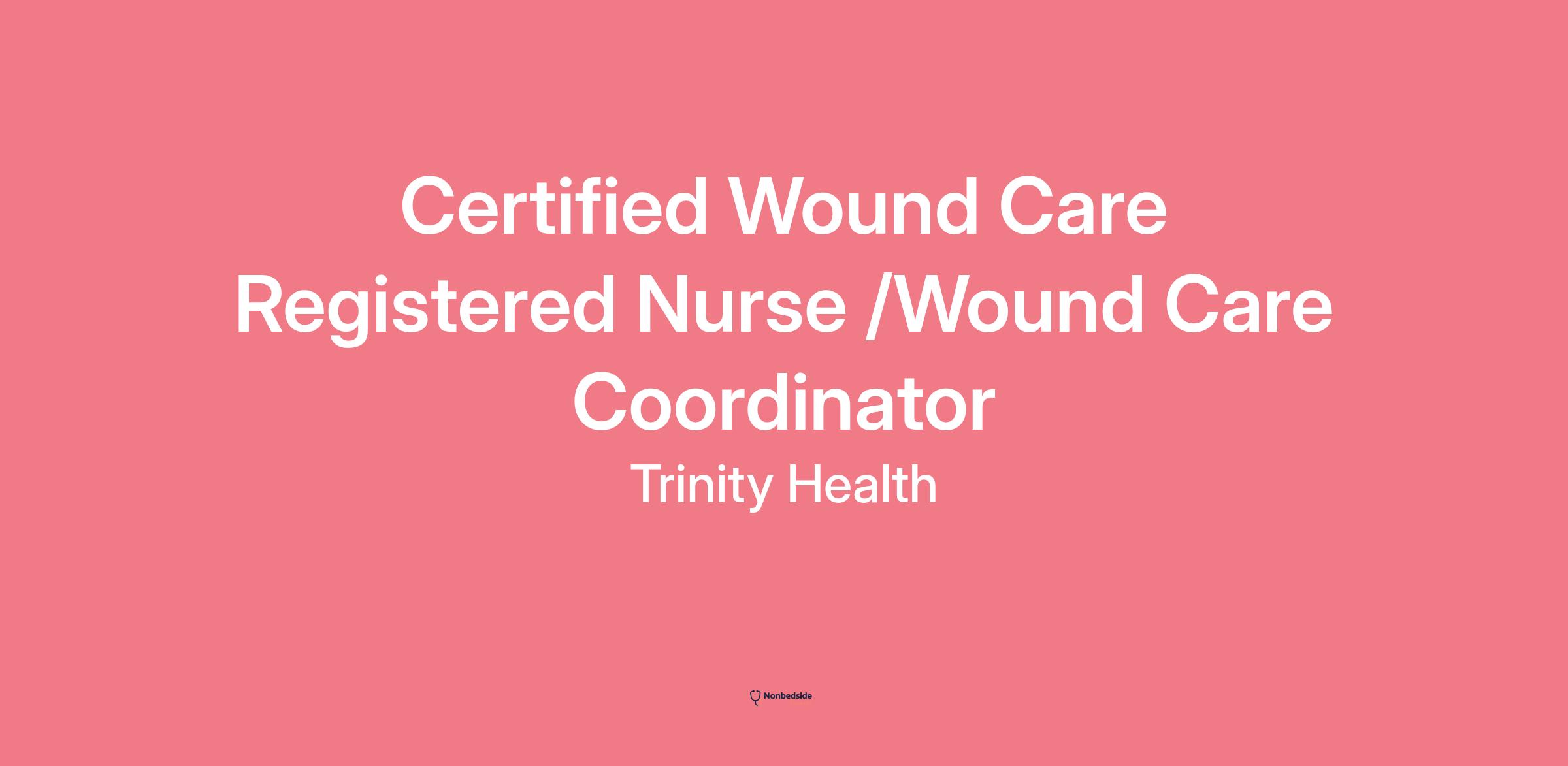 Certified Wound Care Registered Nurse /Wound Care Coordinator Join to apply for the Certified Wound Care Registered Nurse /Wound Care Coordinator role at Trinity Health