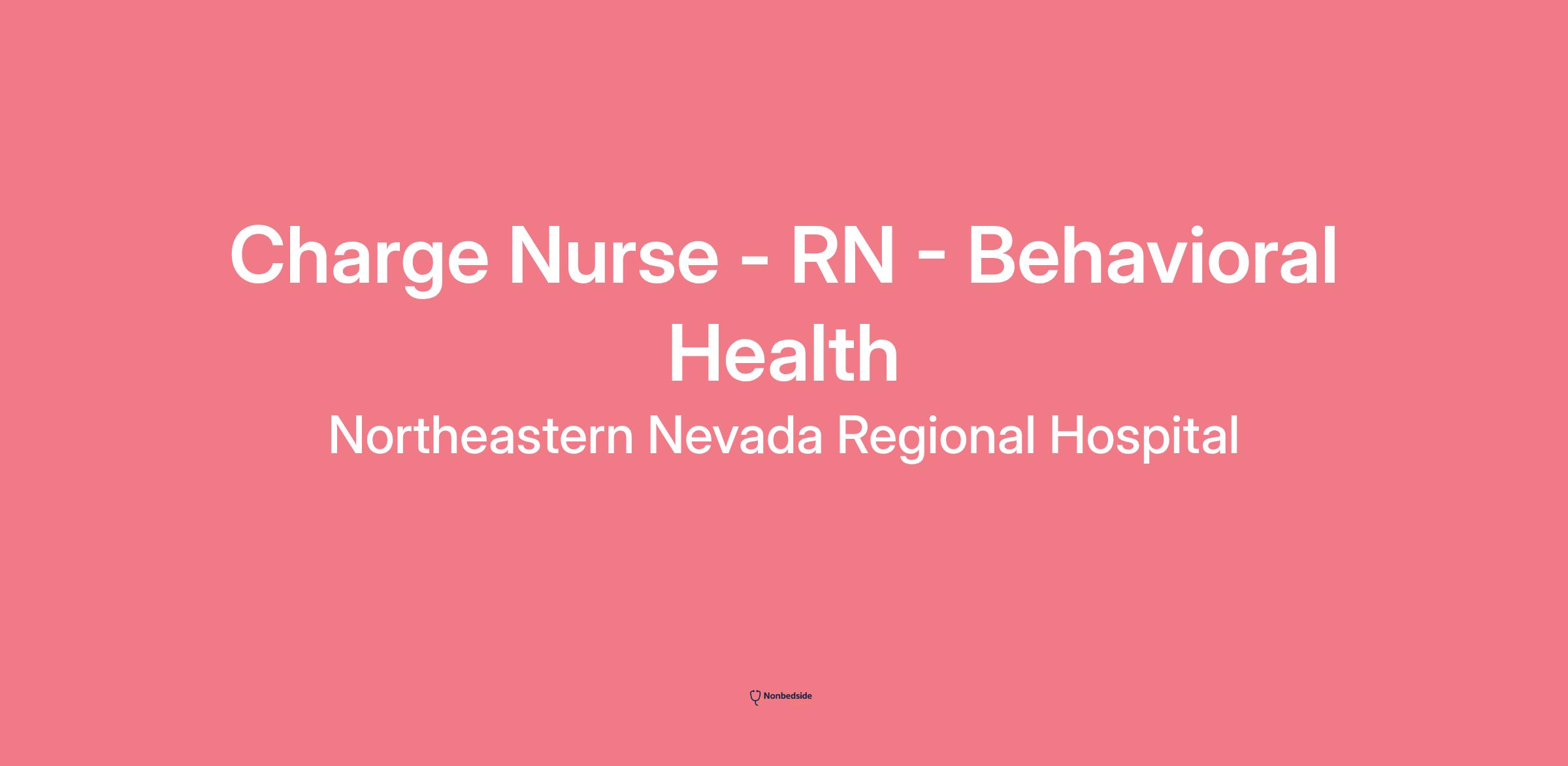 Northeastern Nevada Regional Hospital is part of Lifepoint Health, a diversified healthcare delivery network with facilities coast to coast. We are driven by a profound commitment to prioritize your well-being so you can provide exceptional care to others. As an RN, Charge Nurse, joining our Behavioral Health Unit team, you're embracing a vital mission dedicated to making communities healthier ®. Join us on this meaningful journey where your skills, compassion and dedication will make a remarkable difference in the lives of those we serve.
