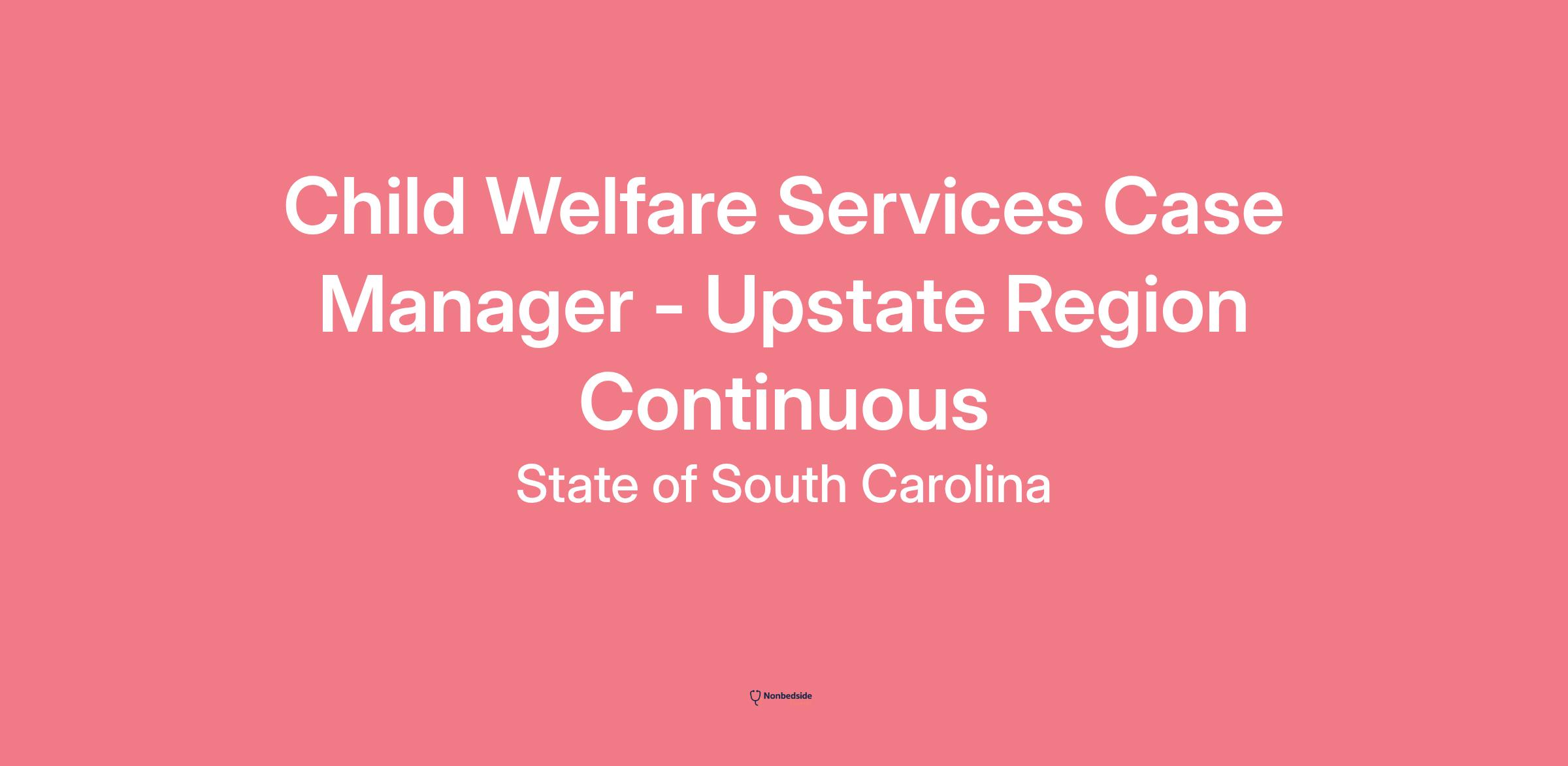 Job Duties:- Case Managers are critically important to our mission to serve South Carolina by promoting the safety, permanency, and well-being of children and vulnerable adults; helping individuals achieve stability and strengthening families. We work to achieve our goals through courage, compassion, and competence, and in all circumstances, we maintain clients' and families' right to confidentiality in compliance with Federal and State laws.
