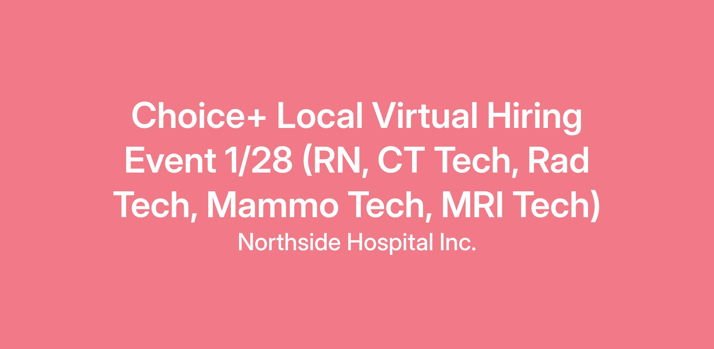 Please join us for a virtual hiring event for Registered Nurses and Radiology professionials.