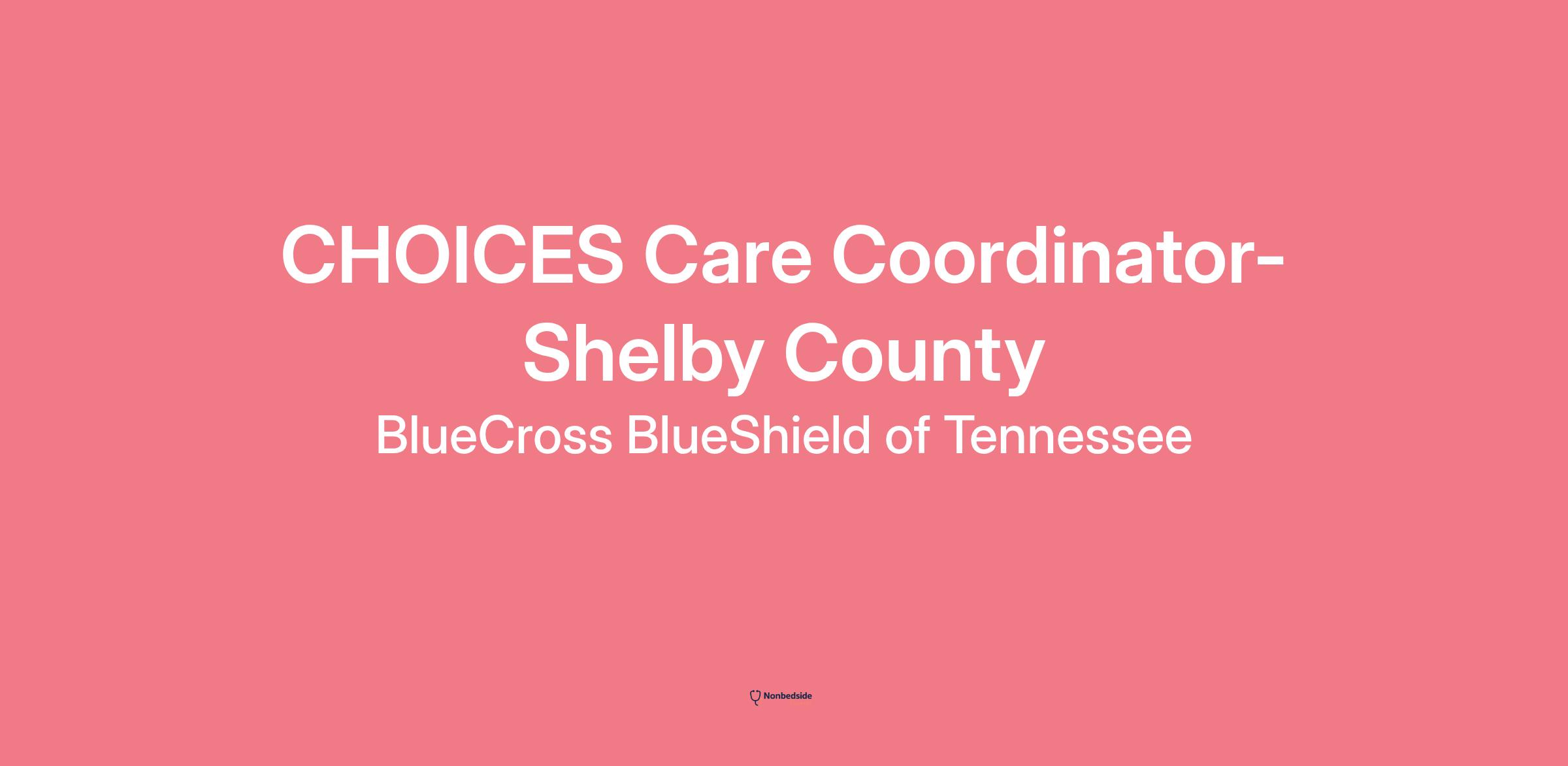 Join to apply for the CHOICES Care Coordinator- Shelby County role at BlueCross BlueShield of Tennessee