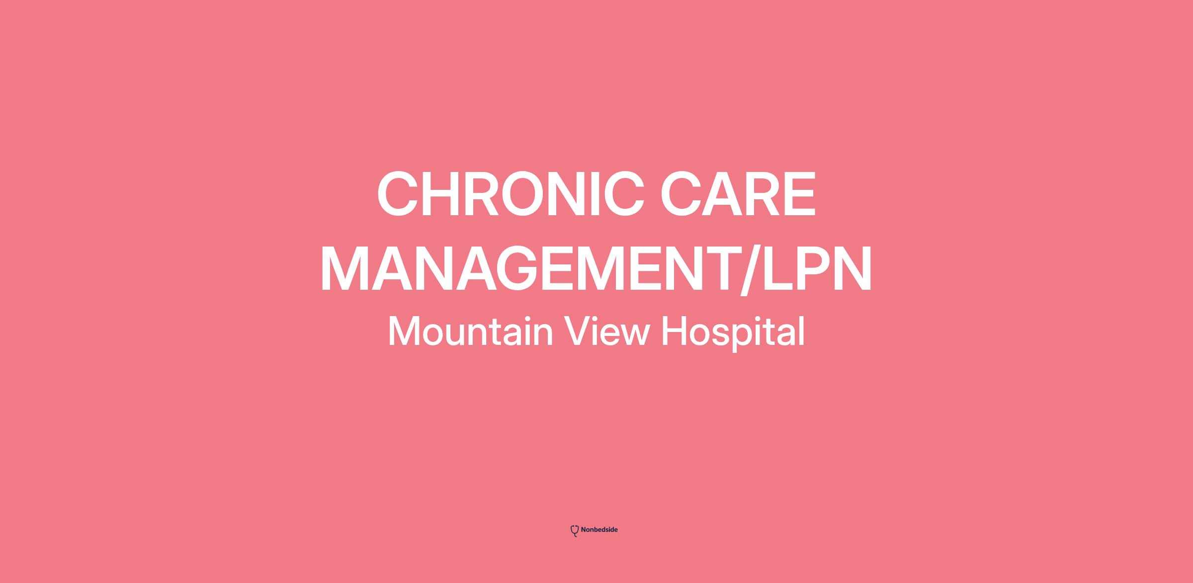 Join to apply for the CHRONIC CARE MANAGEMENT/LPN role at Mountain View Hospital