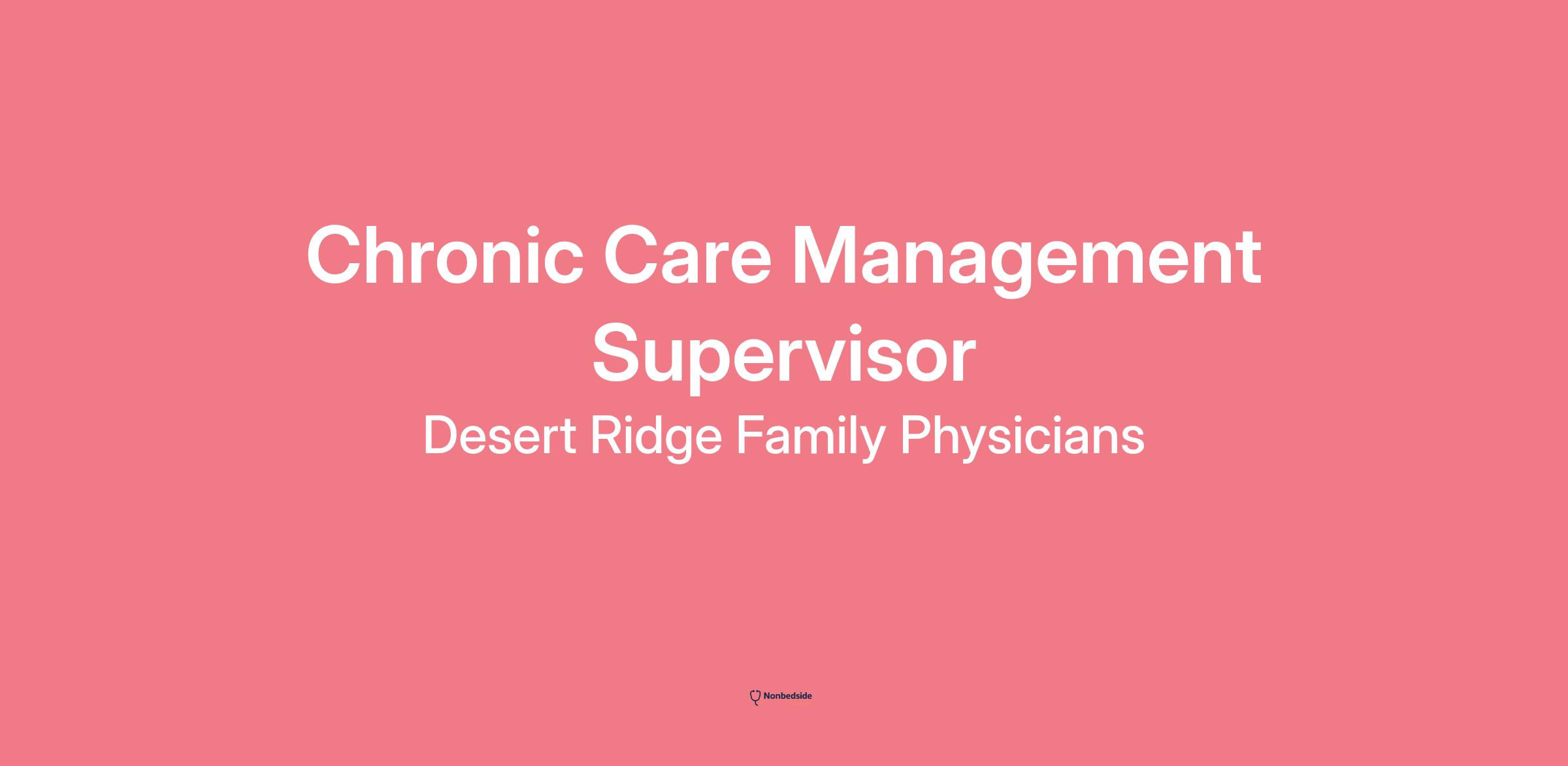 Why Desert Ridge Family Physicians? We are dedicated to personalized, high-quality care. As our CCM Supervisor, you’ll not only impact patient lives every day—you’ll also mentor a talented team and help shape the future of our Care Management program.