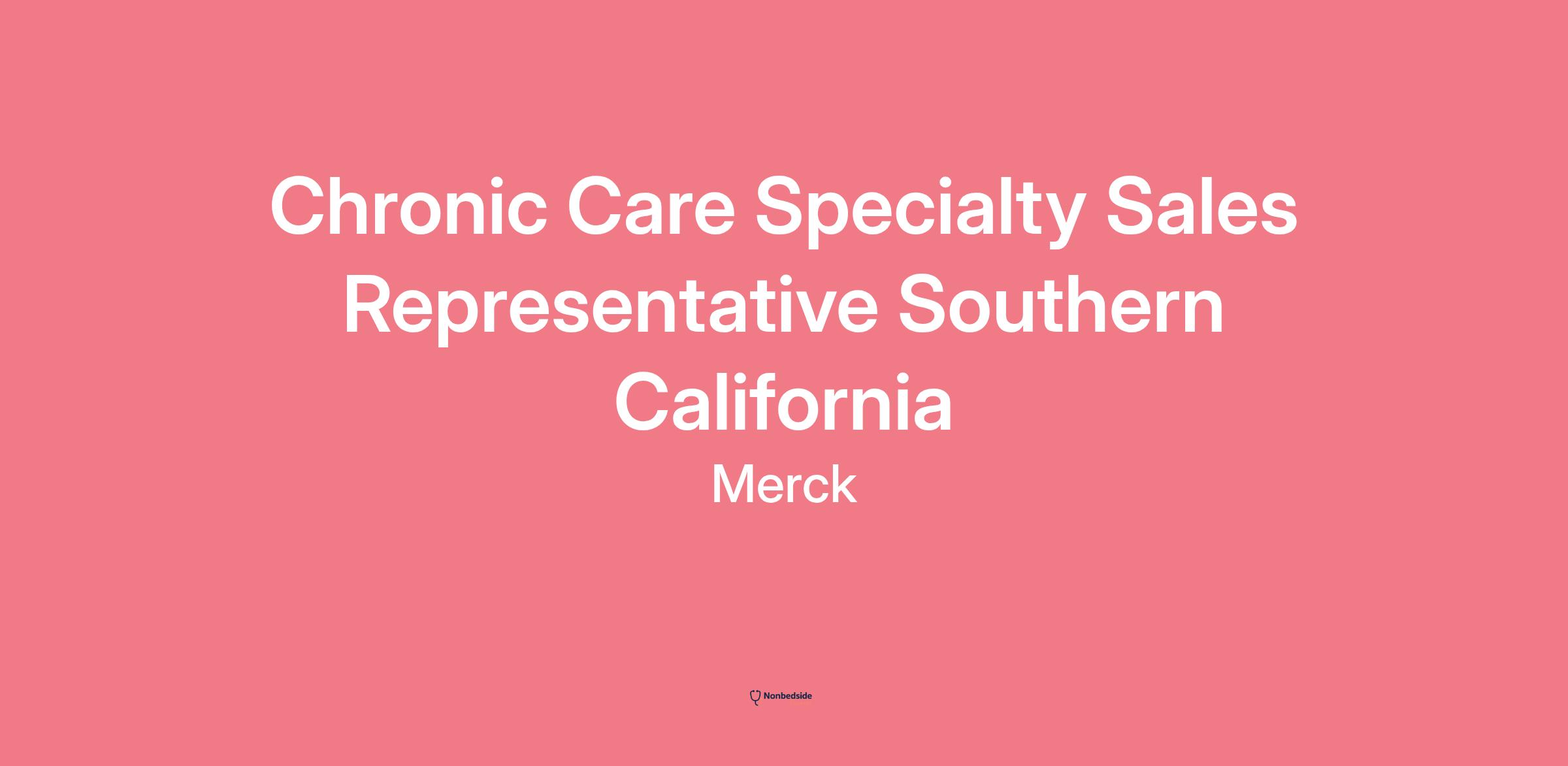 We are hiring multiple Chronic Care Specialty Sales Representatives to support the following territories: