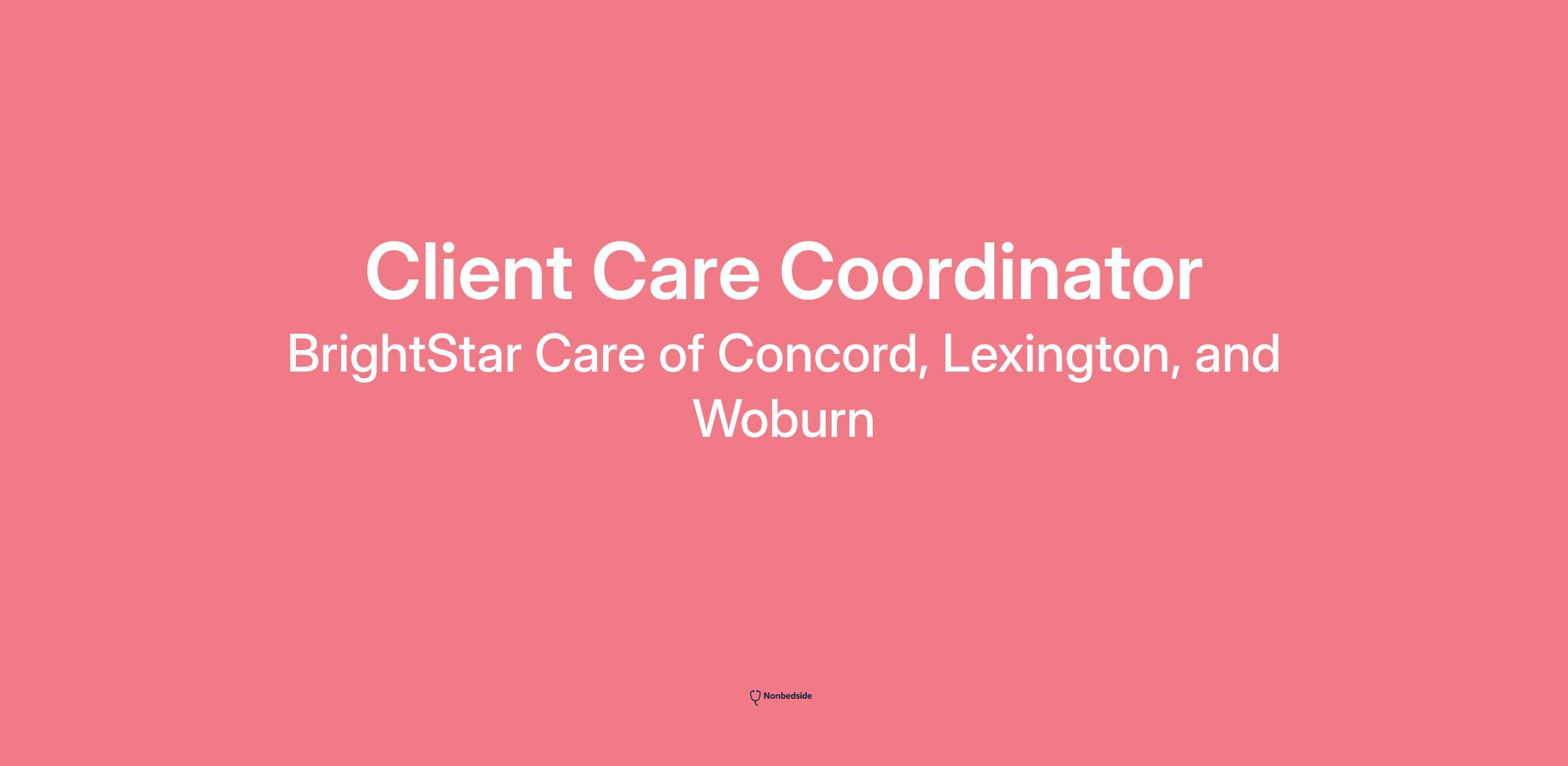 Join to apply for the Client Care Coordinator role at BrightStar Care of Concord, Lexington, and Woburn