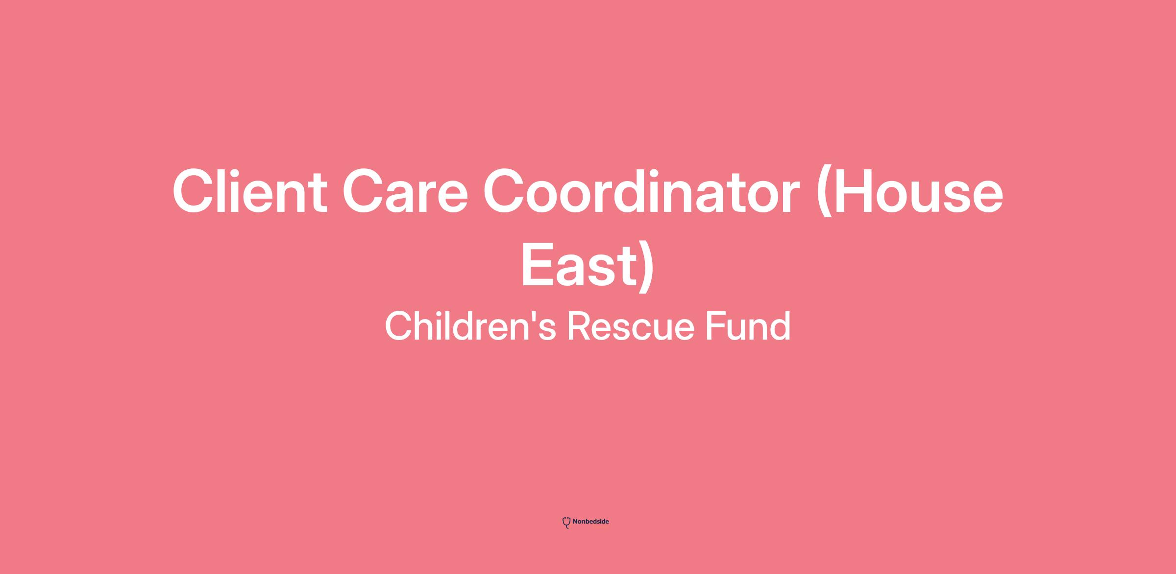 Join to apply for the Client Care Coordinator (House East) role at Children's Rescue Fund .