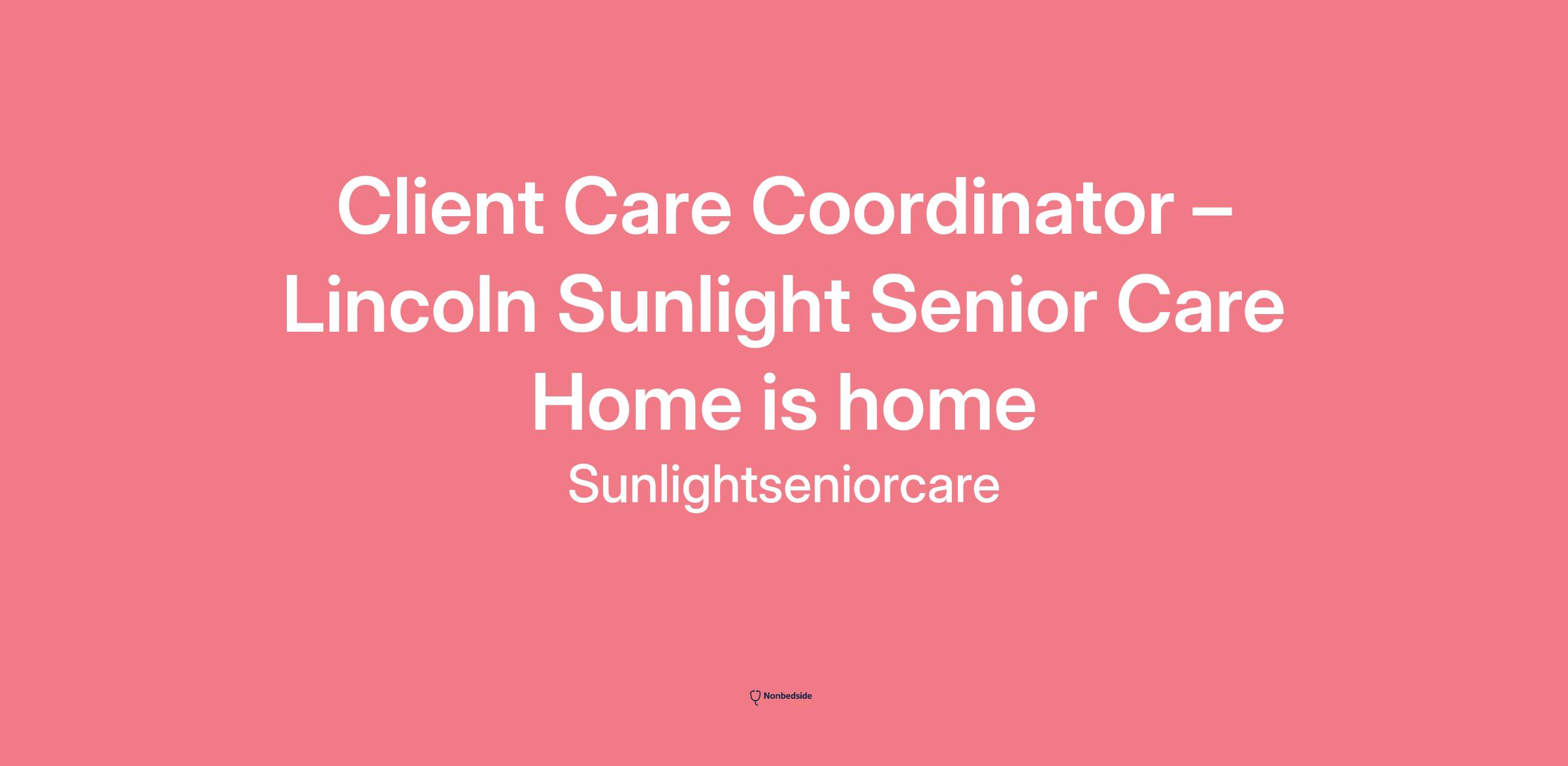 Client Care Coordinator – Lincoln You agree – it’s just not okay that some elderly and/or disabled individuals are not receiving the care they need in their homes. As a Sunlight Client Care Coordinator, you are going to do something about this! You will oversee a team of Caregivers, empowering and encouraging them to be their best, through educational and hands-on training, positive communication, and support. Additionally, you will foster a positive relationship with each client served by your Caregiver team, and at times serve as their Caregiver. As the first point of contact for your group of clients and Caregivers, you play a vital role in ensuring the communication happens that delivers positive client experiences.
