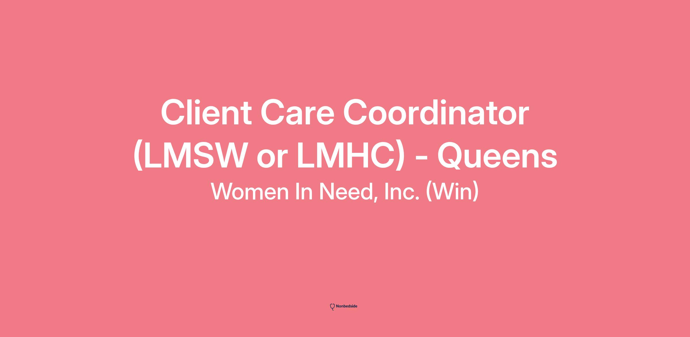 Join to apply for the Client Care Coordinator (LMSW or LMHC) - Queens role at Women In Need, Inc. (Win)