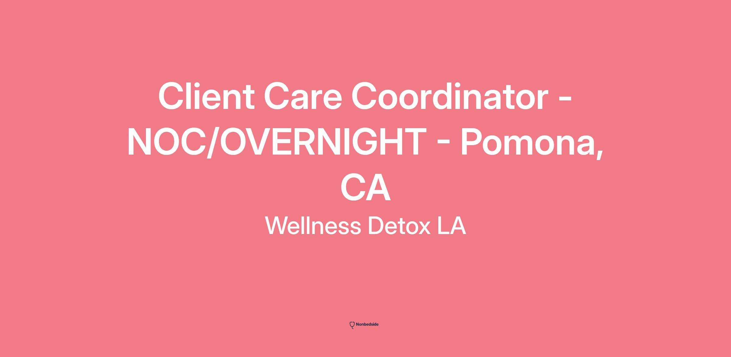 Join our dynamic team at Wellness Detox of LA! Wellness Detox of LA, a proud member of the Quadrant Health Group, is seeking passionate and skilled Client Care Coordinators to join our growing team in Pomona, CA. As a Client Care Coordinator with a nursing focus, you will play a crucial role in ensuring the well-being and satisfaction of our clients.