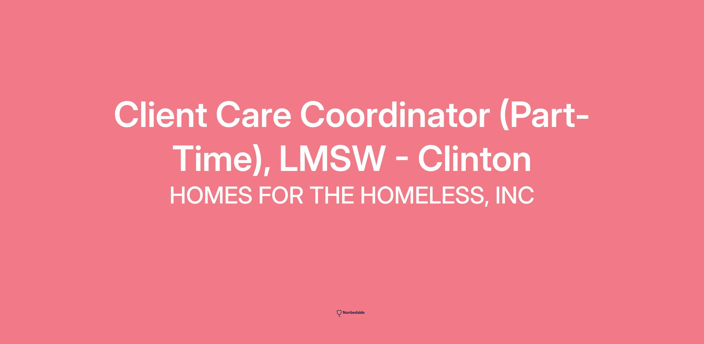 We are excited to invite a passionate and experienced part-time Client Care Coordinator to join our team! Homes for the Homeless (HFH) is searching for an experienced Client Care Coordinator for our Families w/ Children facility in the Hell's Kitchen area of Manhattan. As the Client Care Coordinator, you will play a pivotal role in our organization by providing mental health and related services for homeless families. Our ideal candidate will enhance existing services to include a thorough assessment of families’ long-term goals at intake and collaborate with the case management staff to set achievable goals and establish linkages within the community to ensure the family’s success. Join us and be a part of an organization that values your contribution and cares deeply for the community we serve.
