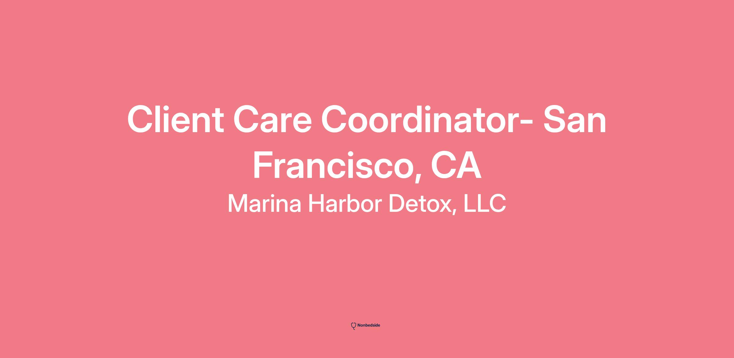 Join our dynamic team at Quadrant Health Group! Marina Harbor Detox, LLC a proud member of the Quadrant Health Group, is seeking passionate and skilled Client Care Coordinators to join our growing team in San Francisco, CA. As a Client Care Coordinator with a nursing focus, you will play a crucial role in ensuring the well-being and satisfaction of our clients.