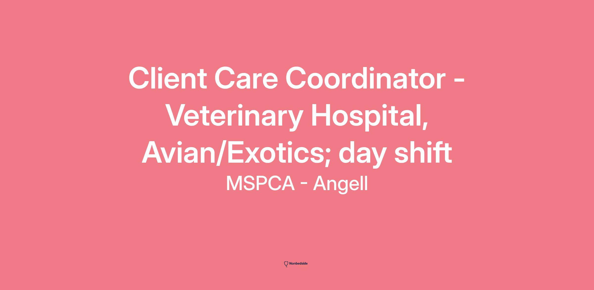 This Client Care Coordinator position is an essential piece of our Avian and Exotics (AE) team. In this role, you will work collaboratively with our AE team to ensure seamless delivery of excellent client service from the patient’s point of admission to the point of discharge. This impactful role provides daily opportunity to make a positive difference in the quality of life of our patients and clients. The Coordinator will act as an integral point person for both clients and clinical staff. In addition to providing support for AE patients and clients, this position also provides supplementary coverage support to other specialty services, offering the opportunity to learn about and work within a variety of highly specialized departments. Ideal applicants will have at least 2 years experience in a hands-on and/or client service role in a veterinary facility, animal shelter/humane society, or other animal related field. Relative experience in a human medical position is also welcomed.
