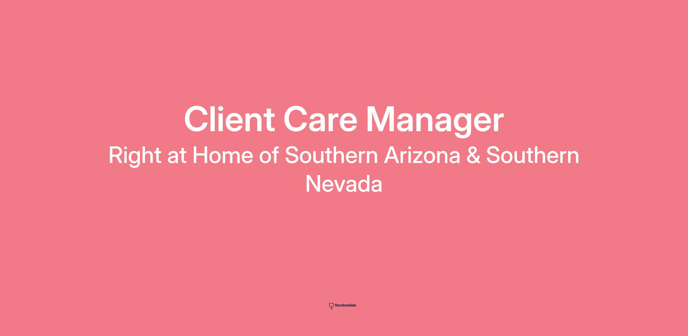 Overview Join to apply for the Client Care Manager role at Right at Home of Southern Arizona & Southern Nevada .