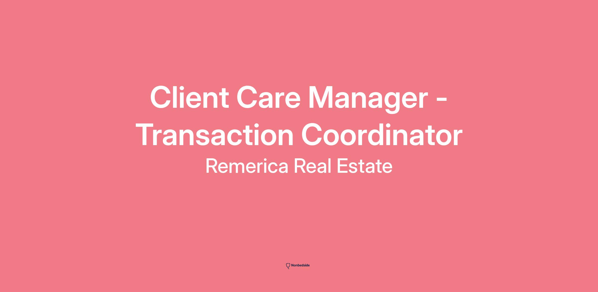 Client Care Manager - Transaction Coordinator Join to apply for the Client Care Manager - Transaction Coordinator role at Remerica Real Estate