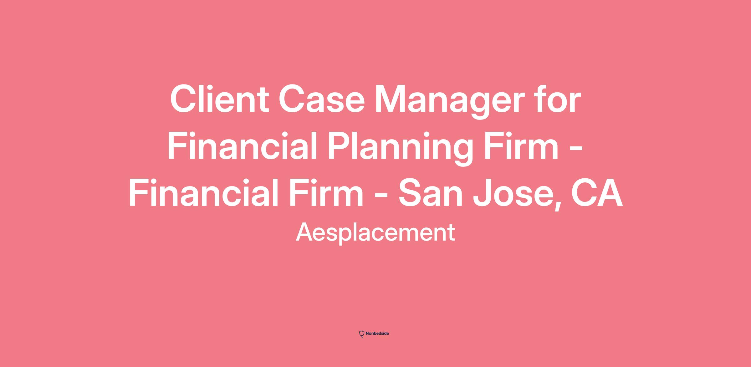 Presented by Advisor Employee Services Thank you for your interest in the Client Case Manager for Financial Planning Firm role. Advisor Employee Services, a consulting firm located in Lenexa, Kansas, represents the top 1% of financial advisors in all 50 states in their hiring needs. Please take a moment to explore our website and the services provided https://aesplacement.com/. We are not a staffing firm, but together have built a reputable and continuously expanding business model which allows us to pinpoint the exact personnel needs of these established financial advisors. If you feel that you have the skills it takes for the position responsibilities listed, please apply today!