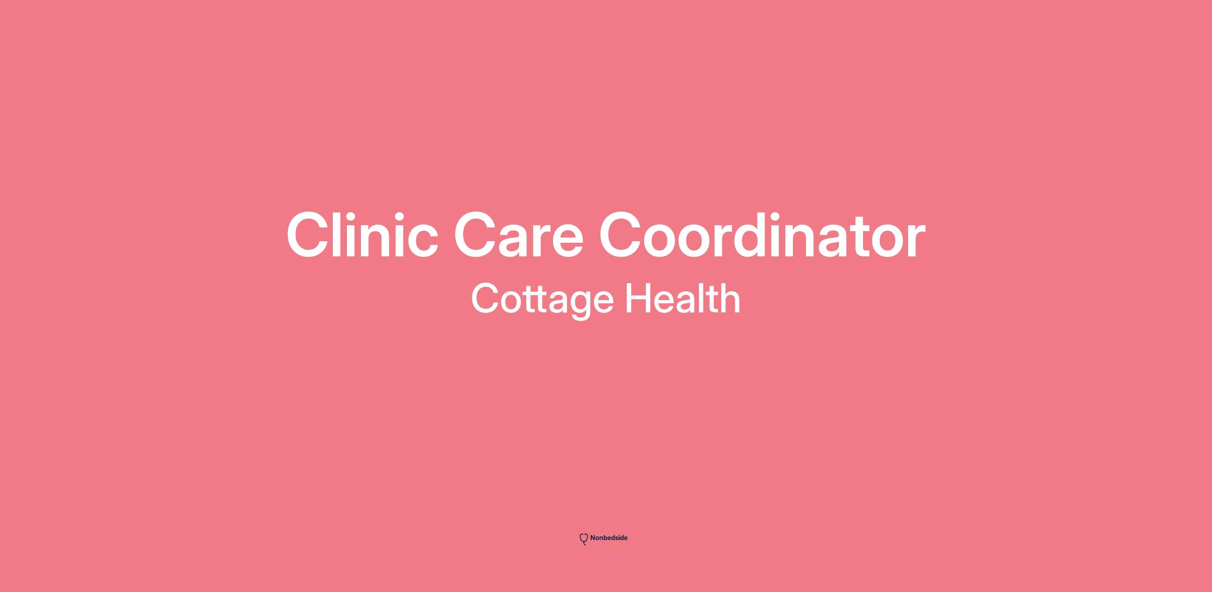 Job Description Cottage Medical Group seeks a Clinic Care Coordinator for their CMG Cottage Cardiology Clinic Santa Barbara responsible for interacting with patients and visitors at the clinic and managing administrative tasks for the medical team. Duties include receiving phone calls, scheduling patient appointments according to physician’s availability, explaining intake forms and consent forms to new patients, processing payments, performing patient registration, check‑in and check‑out.