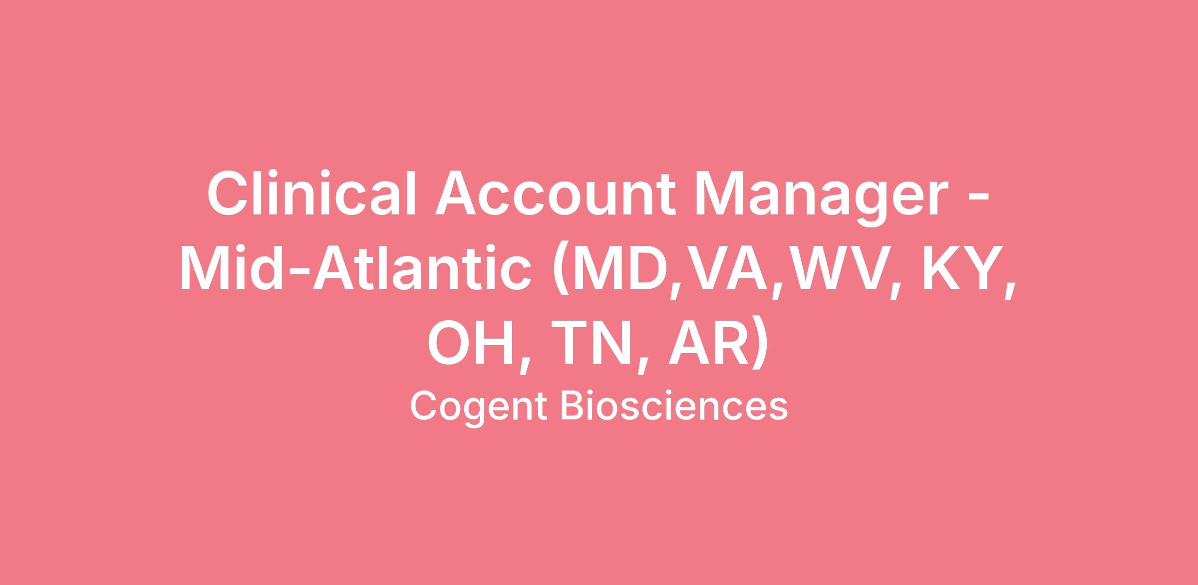 The Role: The Clinical Account Manager (CAM) will serve as a critical member of the Customer Engagement Team and will have an exciting opportunity within Cogent to potentially launch Bezuclastinib in multiple indications across three disease states. The Clinical Account Manager will be responsible for meeting sales targets and utilizing all available resources while tailoring them to meet the customer's needs through a deep understanding of their requirements. Behaviors that are critical for success in this role are collaboration, communication, planning, relationship building, and the ability to execute tactical initiatives and provide timely feedback. CAMs will report directly to the Regional Business Director.