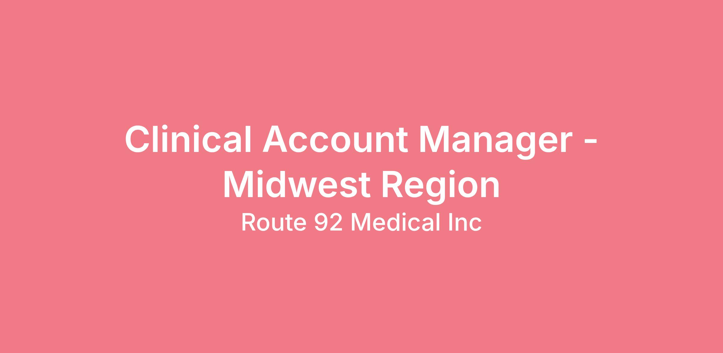 Route 92 is seeking a Clinical Account Manager in our North West region to accelerate adoption of our technology by building clinical and technical customer advocacy. Our company growth is driven by the conviction that the Route 92 Team and technology are truly differentiated in the market. Through close collaboration with our healthcare partners, we are committed to improving outcomes for stroke patients. We are looking for people passionate about innovative, disruptive technology and exceptional service to join our team. Must reside between Los Angeles, CA and San Diego, California to support the region.